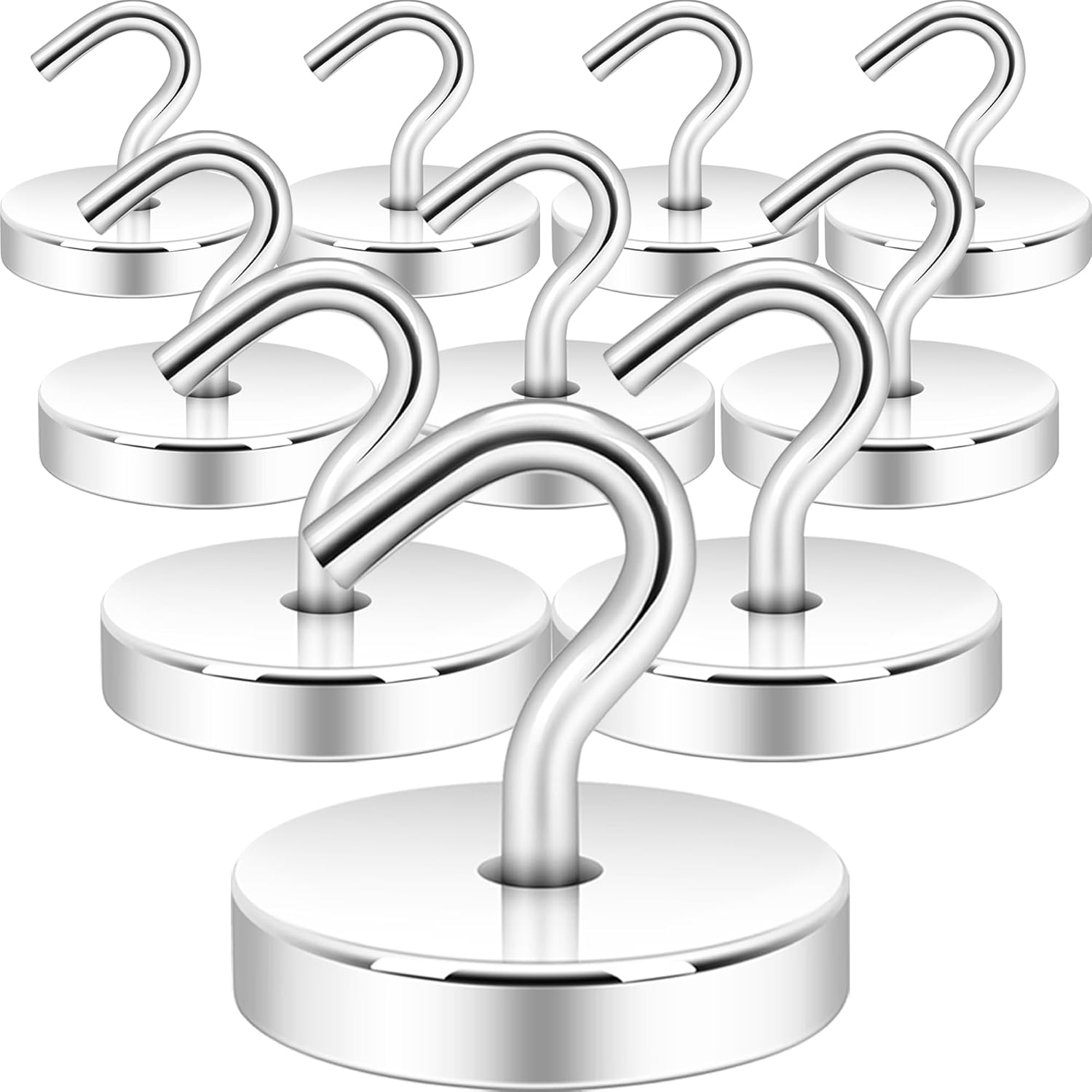Neosmuk Magnetic Hooks, Cruise Ship Essentials, 120lb+ Heavy Duty Magnetic Hooks for Cruise Cabins, Refrigerator, Grill, Hanging, and Travel | Extra Strong Must-Haves Magnet Hook,Silver, Pack of 10
