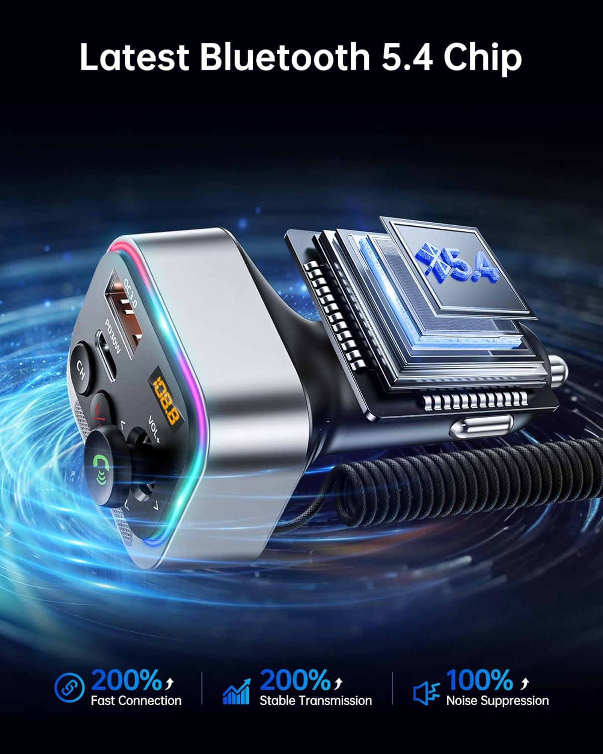 - Special Feature : Bass Boosted & Hi-Fi Stereo Music, LED Ambient Light Swith, Latest Bluetooth 5.4 Chip, 66W Fast Charge Car Adapter with USB-C Coiled Cable, Stronger Dual Mics, CVC Noise Reduction Calling Bass Boosted & Hi-Fi Stereo Music, LED Ambient Light Swith, Latest Bluetooth 5.4 Chip, 66W Fast Charge Car Adapter with USB-C Coiled Cable, Stronger Dual Mics, CVC Noise Reduction Calling