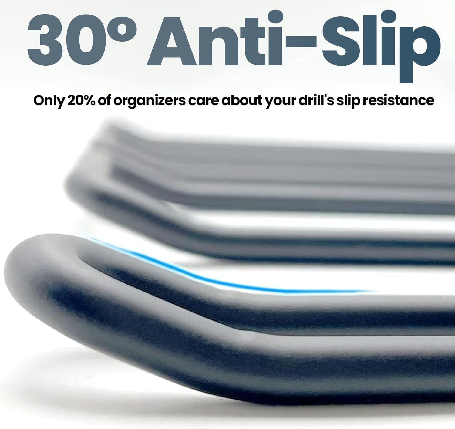 - 【Non-Slip Design】 At Vikerniel, we're all about the details. Our meticulous design includes a 30° anti-slip arc, inspired by a valuable customer regarding drill slips. The holder features a safe curvature, ensuring your precious drill stays securely in place within the organizer.