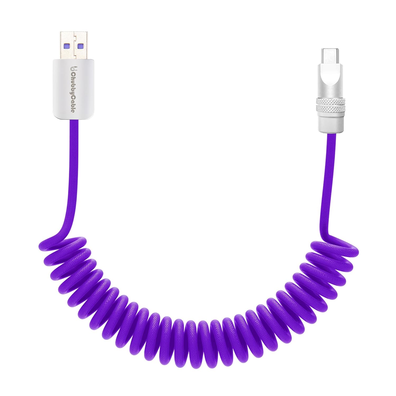 chubbycable Curly Chubby - Retractable Fast Charging Cable 240W Coiled Charger Cord for Car Durable USB-C Cable for Phones, Tablets and More, Purple, USB-A to Type-C, 1.3FT-2.3FT