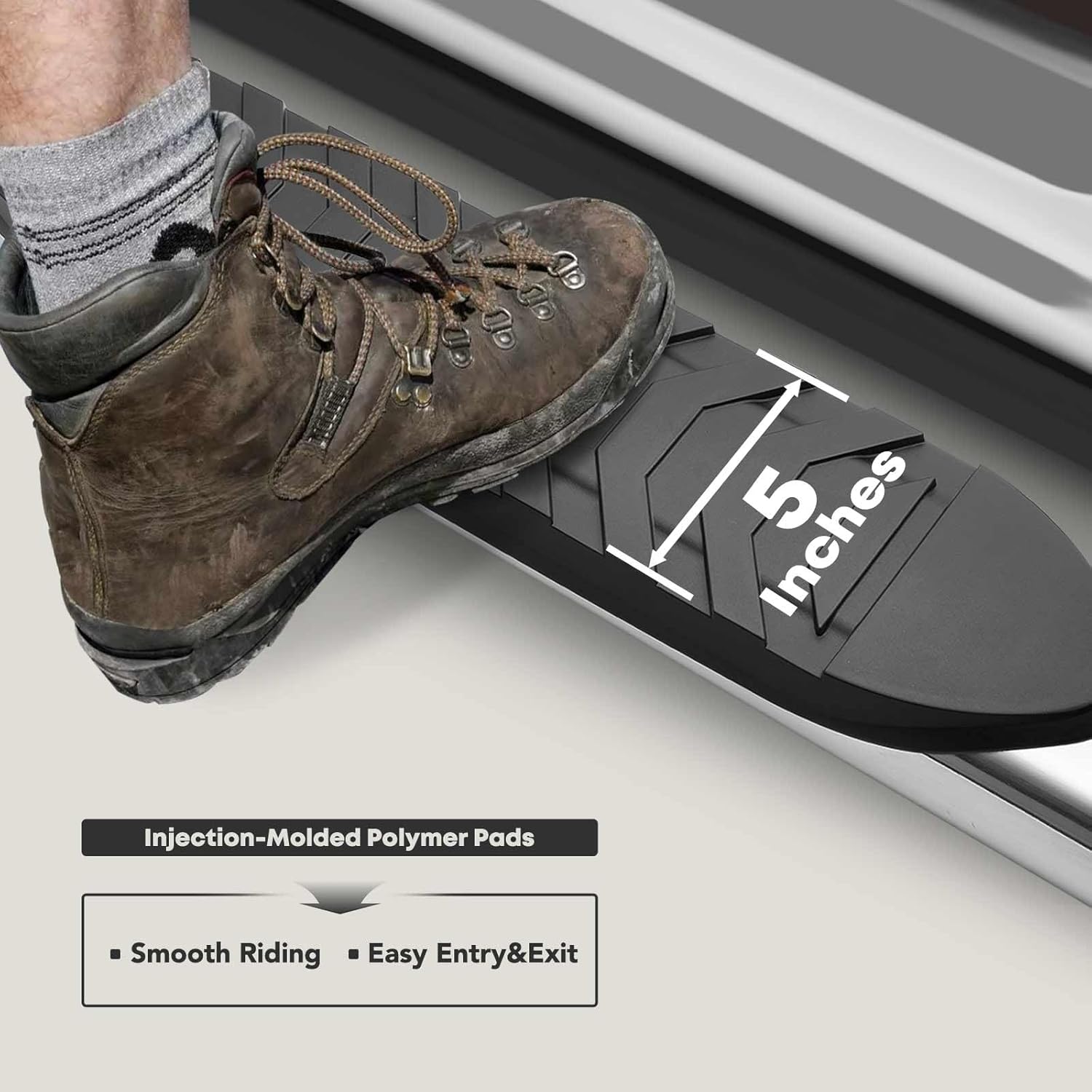 - Rocker Panel Mount: Running boards come with all necessary brackets, bolts, and nuts for installation, eliminating extra drilling if your vehicle has preexisting mounting holes. The packaging features five layers of reinforcement to prevent deformation