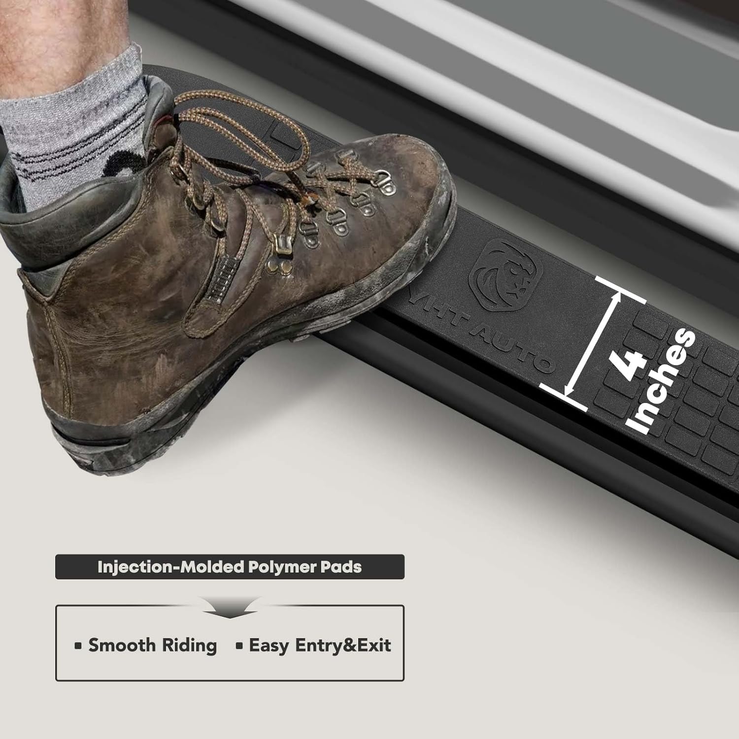 - High-Strength Steel: The step bars are crafted from high-strength Q235A steel and are enhanced with an electrophoretic layer and powder coating. This dual-layer protection greatly improves wear and corrosion resistance, while also imparting a sophisticated appeal