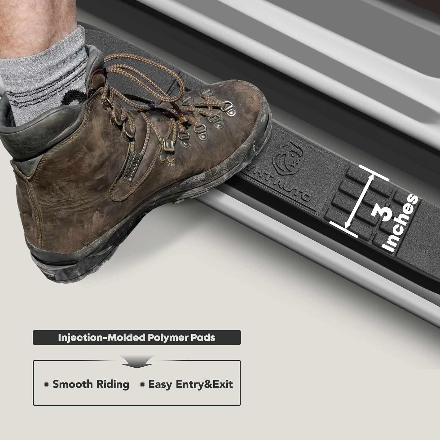 - Rocker Panel Mount: Running boards auto bars come with all necessary brackets, bolts, and nuts for installation, eliminating extra drilling if your vehicle has preexisting mounting holes. The packaging features five layers of reinforcement to prevent deformation
