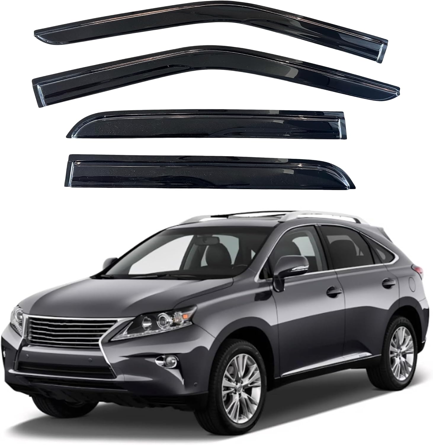 - 【Perfect Fit】KPY window visors rain guards vent deflectors compatible with Lexus RX350 RX450h 2010 2011 2012 2013 2014 2015 (Mugen Style)
