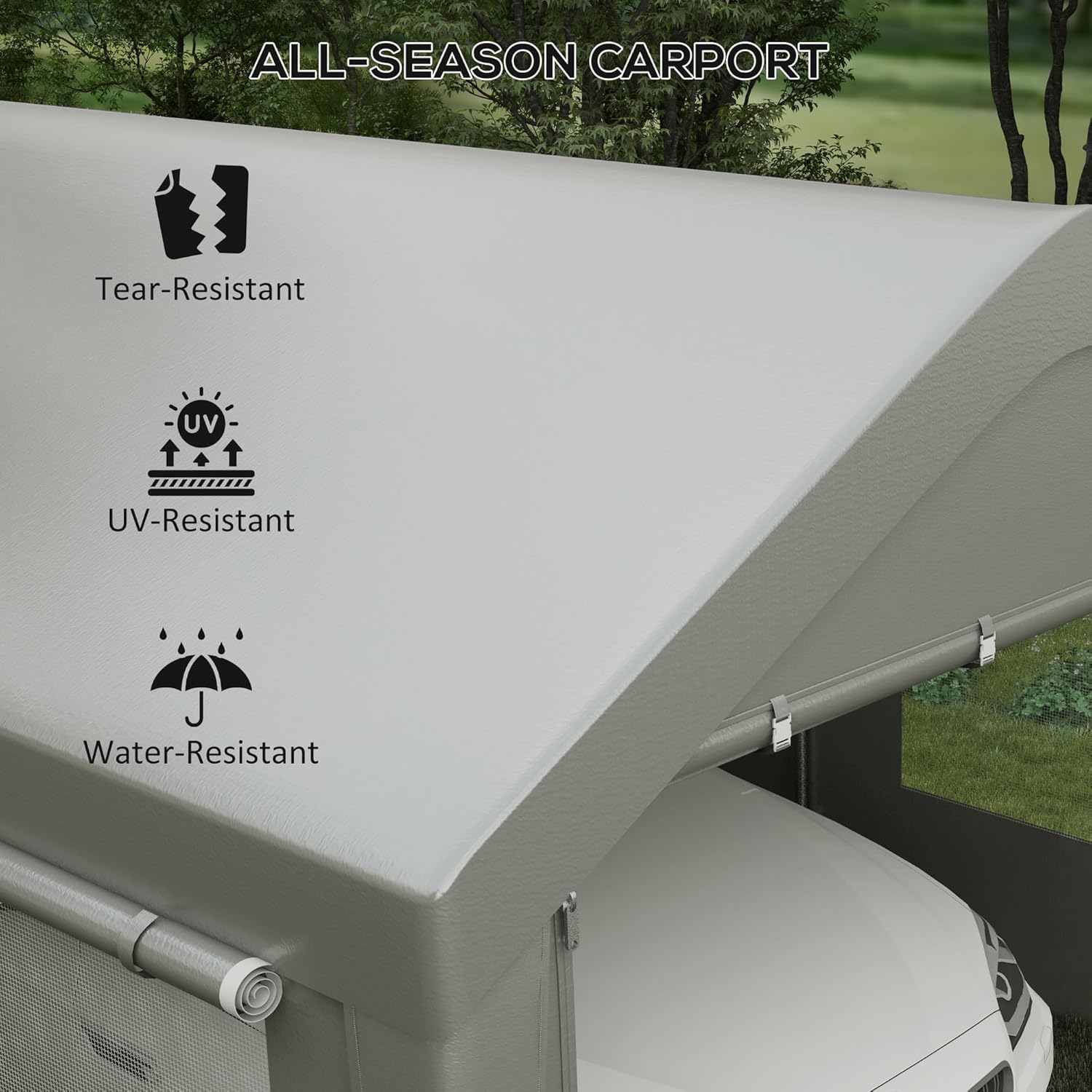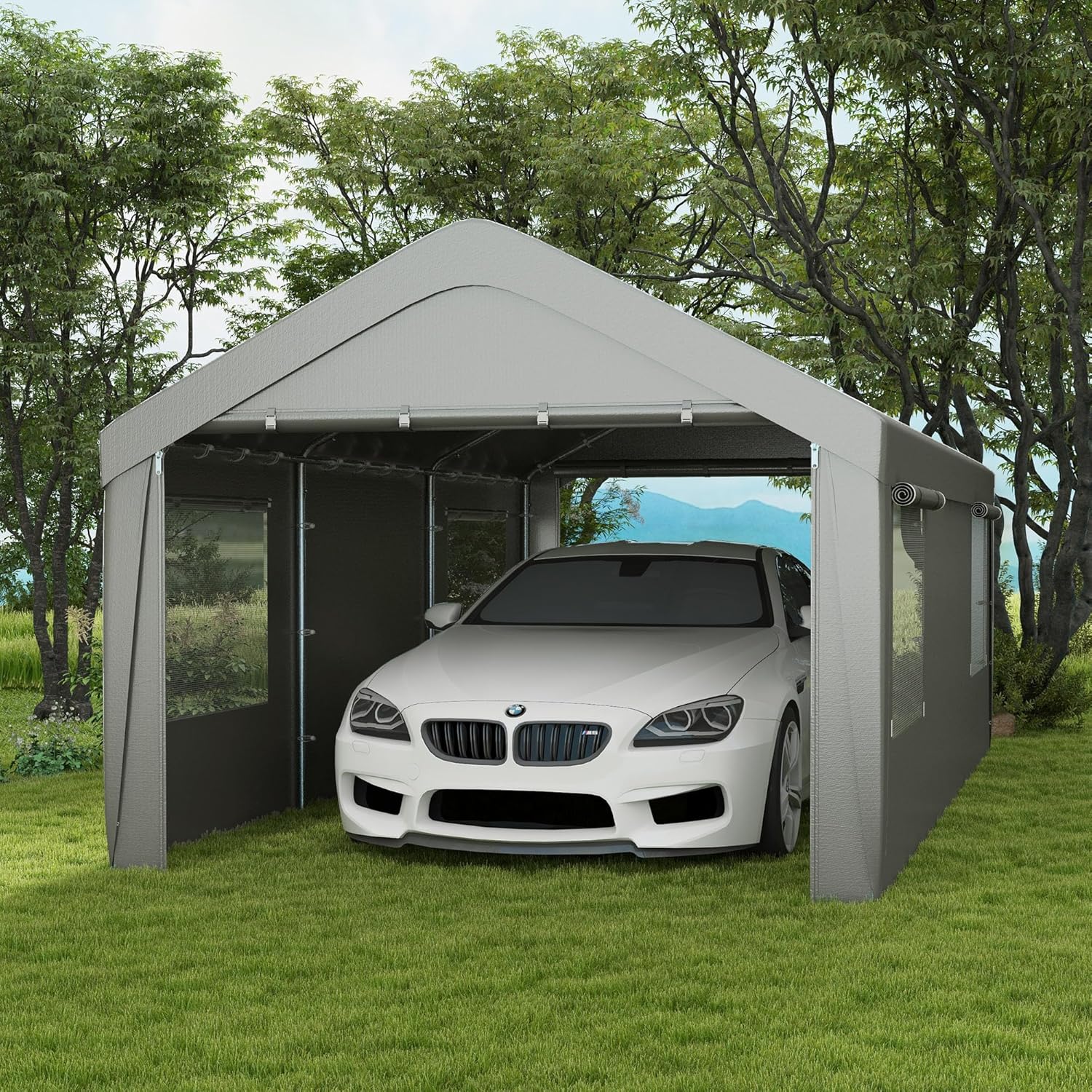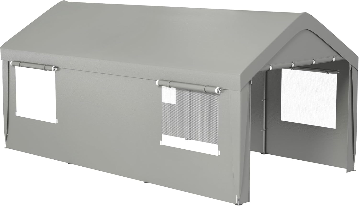 Outsunny Carport 10' x 20' Portable Garage, Heavy Duty Car Port Canopy with 2 Roll-up Doors & 4 Ventilated Windows for Car, Truck, Boat, Garden Tools, Gray