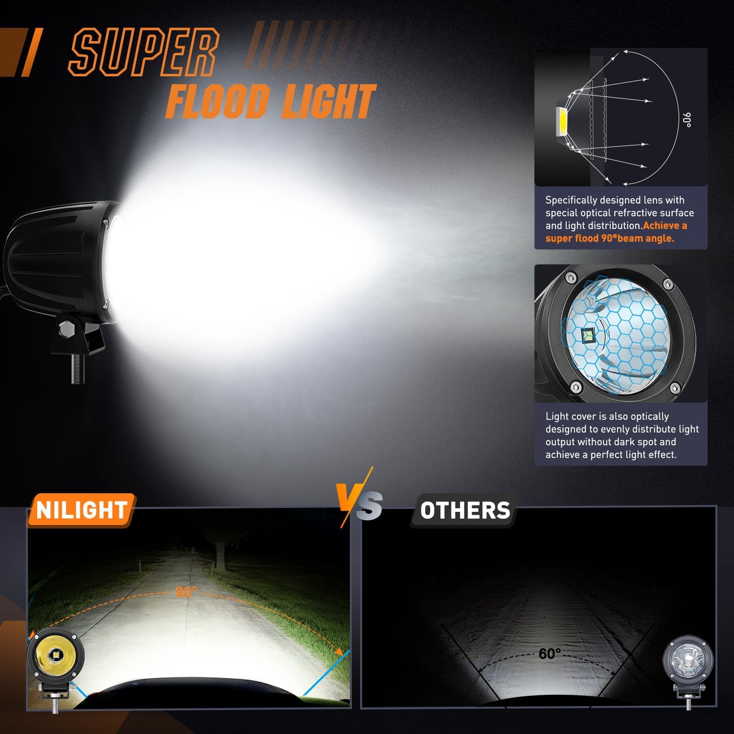 Nilight LED Light Pods 2 PCS 3" Spot Round Offroad Driving Auxiliary Fog Lights 1065LM Built-in EMC w/18AWG DT Wiring Harness Kit for Motorcycle SUV ATV Truck Boat