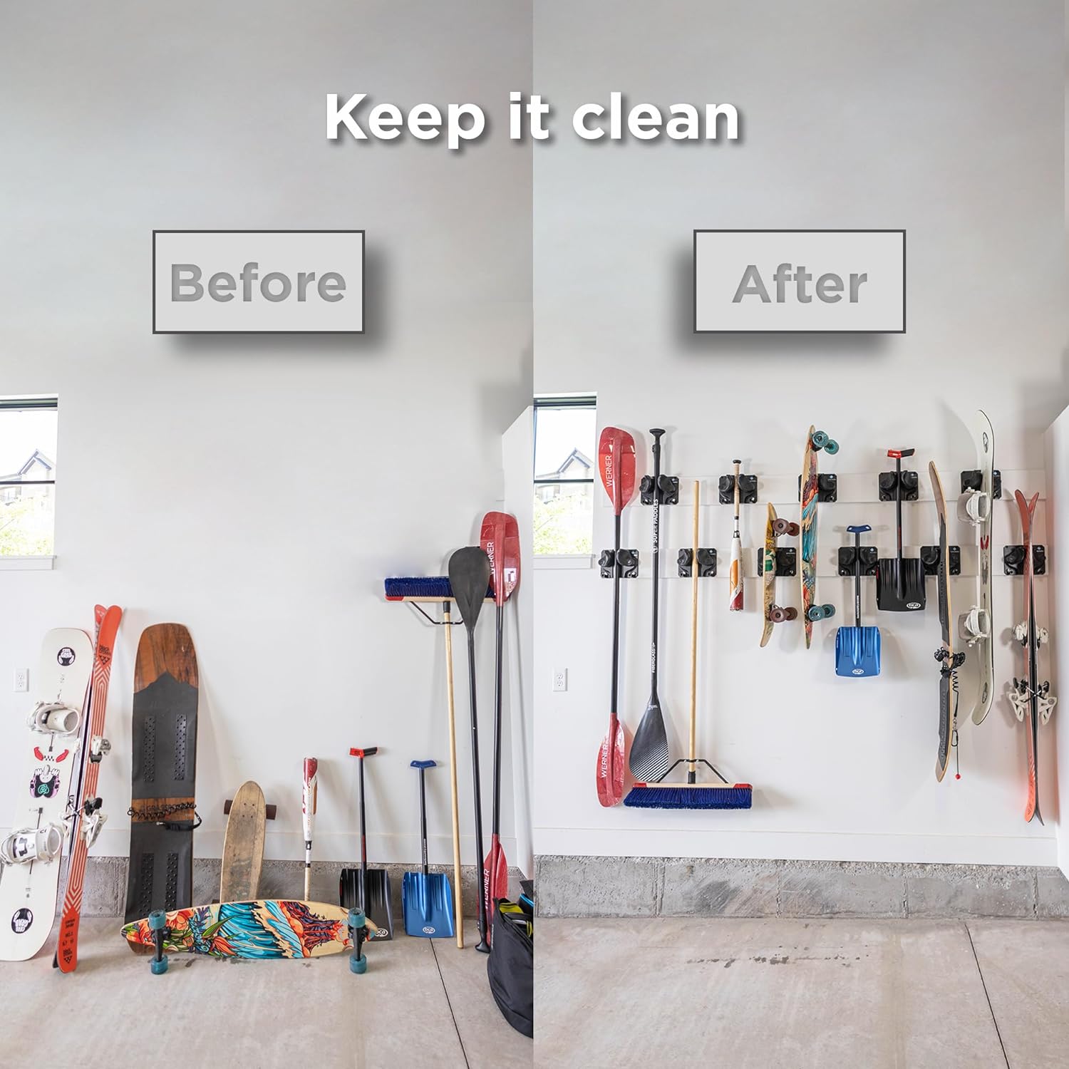 - INTERLOCKING CORNERS - Odds are, you have more than one set of skis/boards in your quiver. Gravity Grabber has you covered. With interlocking corners, adding more "Grabbers" to your wall has never been easier. Interlocking corners let you stagger "Grabbers" side by side. This wall storage system helps you keep your garage and quiver looking nice while being stored.
