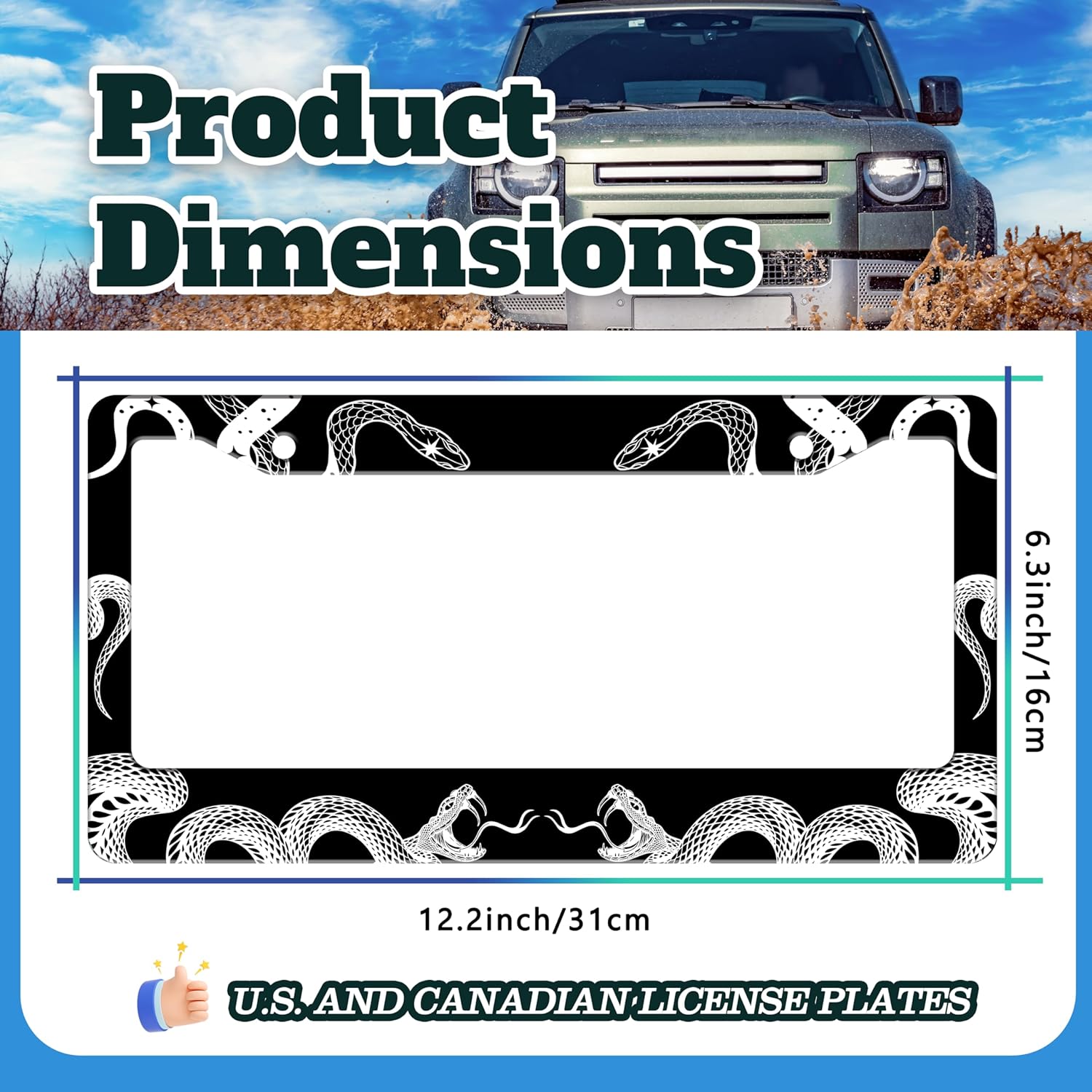 Black and White Snake Crawling License Plate Frame Gothic License Plate Holder for Front or Rear Car Tags Stainless Steel Funny Car Decoration with Screws 6.3 X 12.2 in