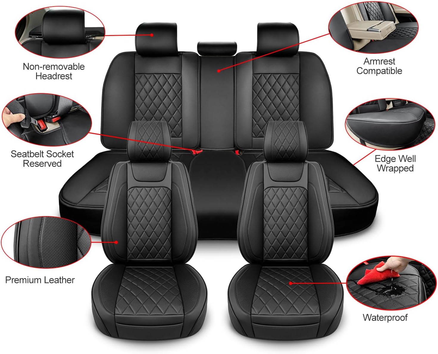 Leather Car Seat Covers Full Set,Unique Rear Design Easy to Install Car Seat Cover Protectors,Universal Full Surround Front Back Auto Seat Cover,Car Seat Cover for Sedan Cars Pick-up Trucks SUV