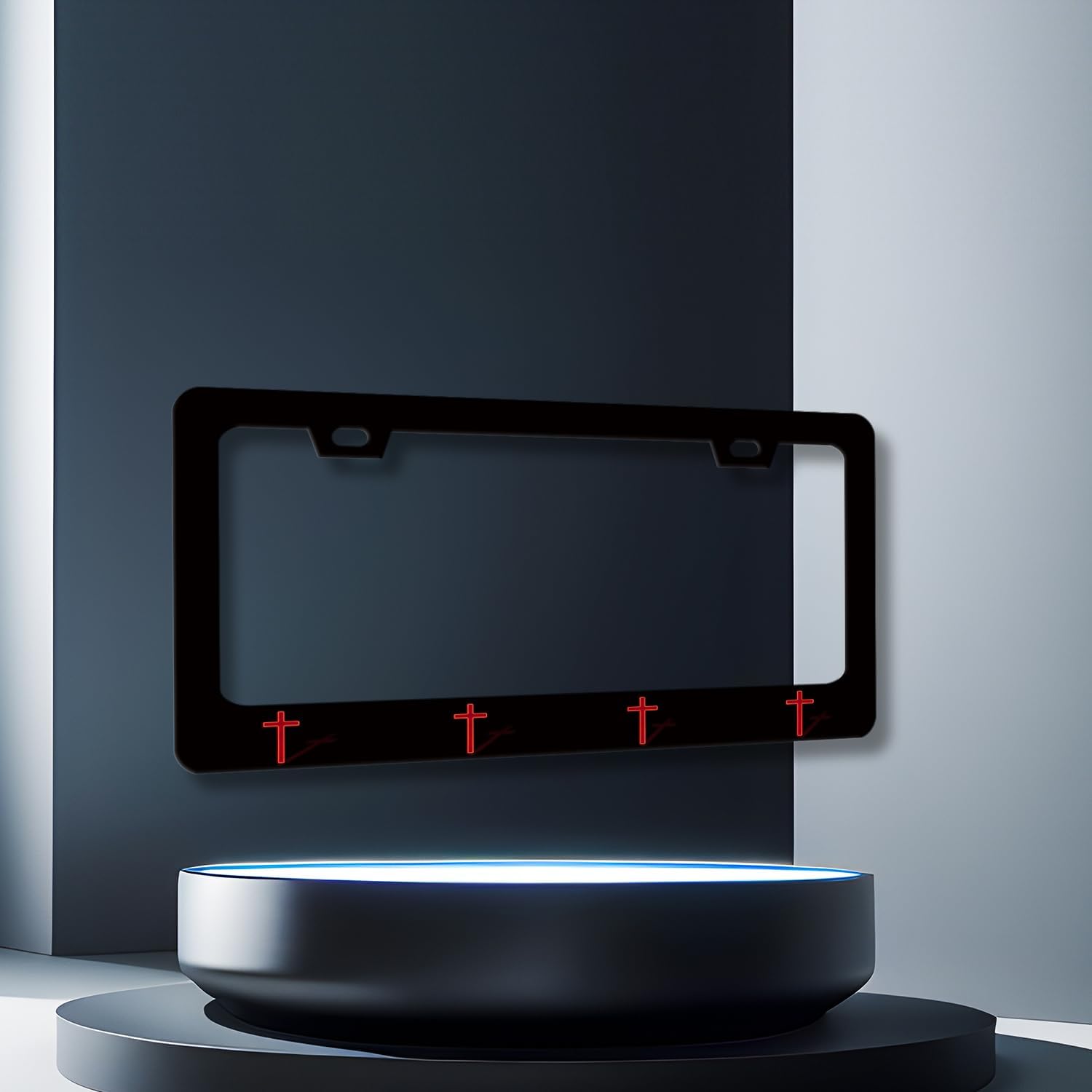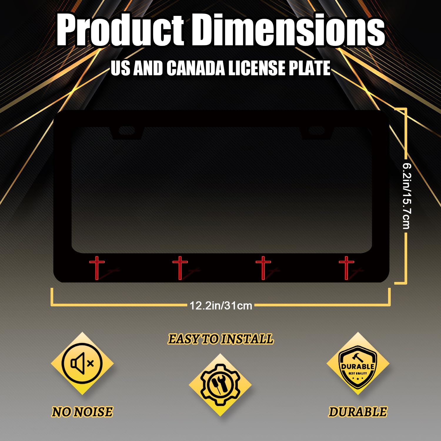 Jesus Cross License Plate Frame Red Christian Cross License Plate Holder Funny License Plate for Car Decoration Stainless Steel Religiou Car Accessories with Screws Men Women 12.3" x 6.3"