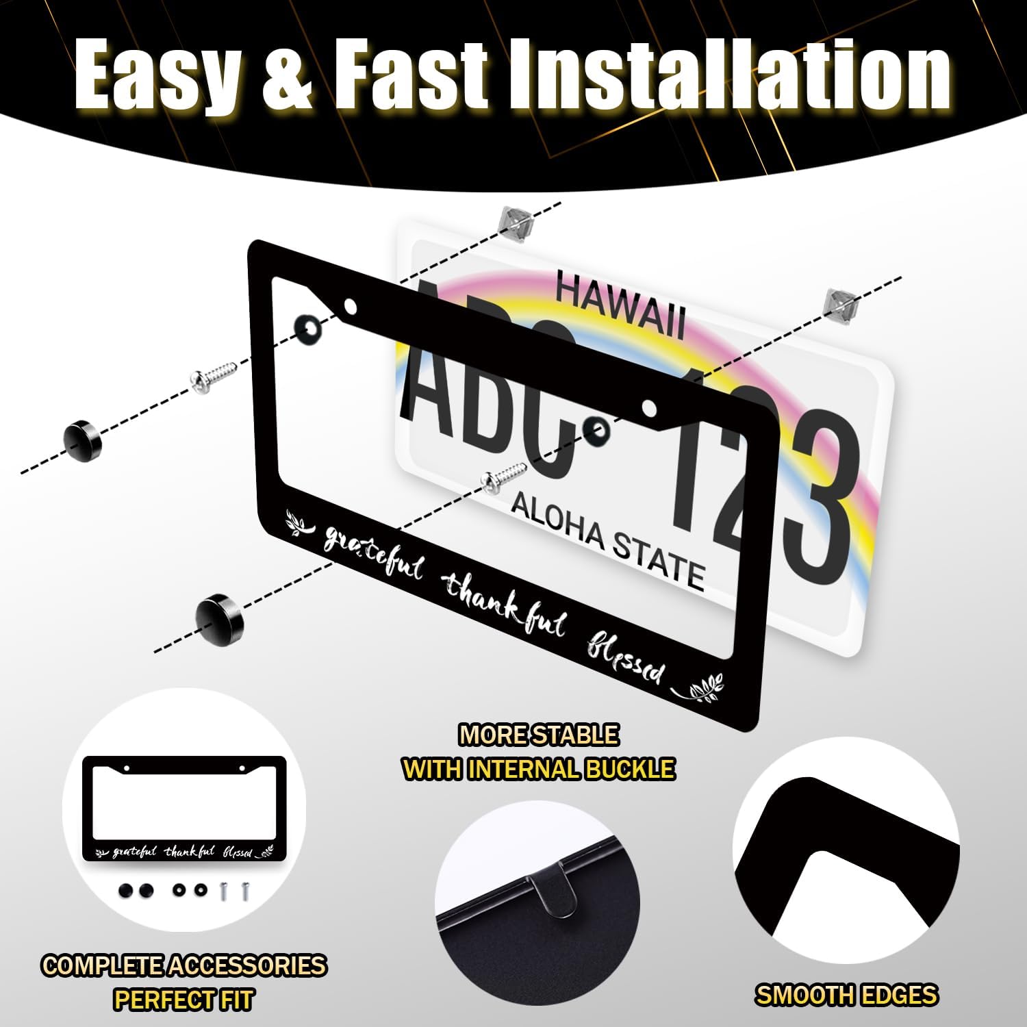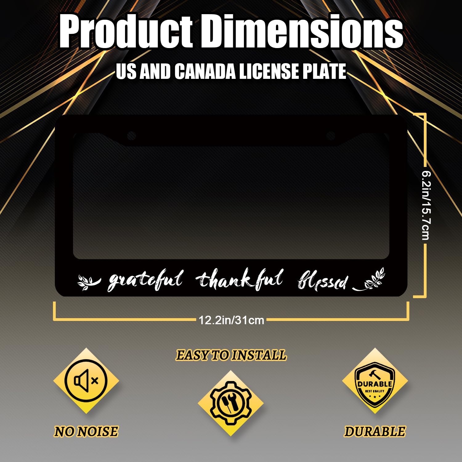 Thankful Grateful Blessed License Plate Frame Christian License Plate Holder Funny License Plate for Car Decoration Stainless Steel Belief Car Accessory with Screws 12.3" x 6.3"