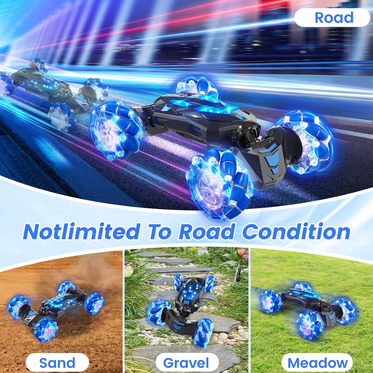 - Advanced 3 control modes Technology: gesture sensing, remote control and gravity sensor watch control ,Control your stunt car with simple hand gestures! Tilt, flip, and rotate the car effortlessly using intuitive motion controls, making it easy for kids and adults alike to perform jaw-dropping tricks.