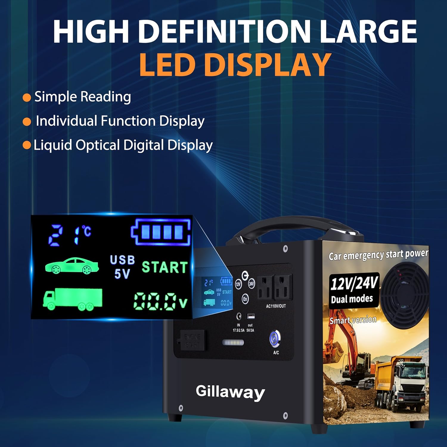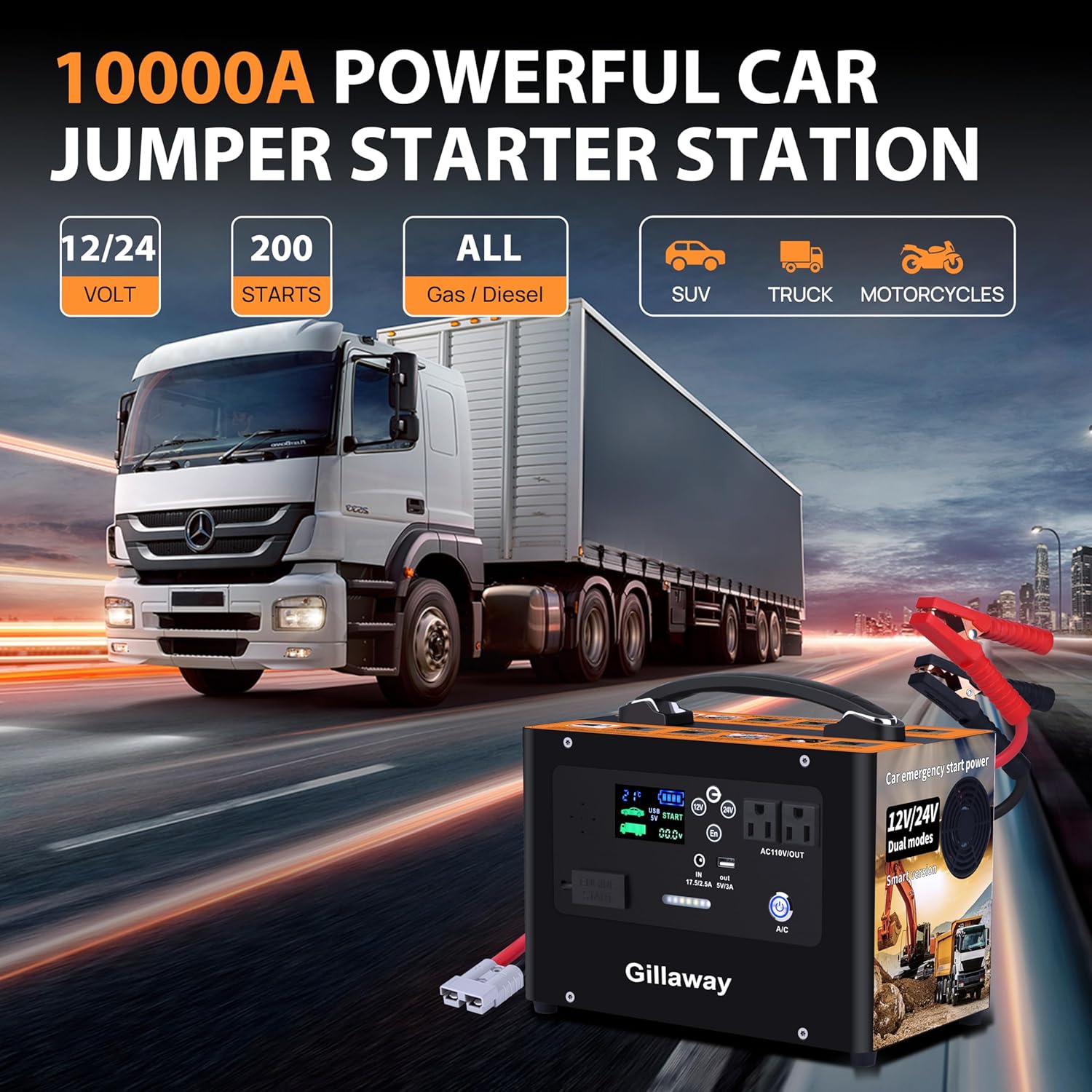 - 【24V/12V Car Jump Starter Power Supply】Powerful and safe. With enhanced 10,000A starting current, the car battery jump starter battery pack can restart your vehicle instantly even at -4~140°F, compatible and support all petrol or diesel engines up to 200 times. Including trucks, trailers, vans, regular cars, factory trucks, yachts, excavators, tractors.