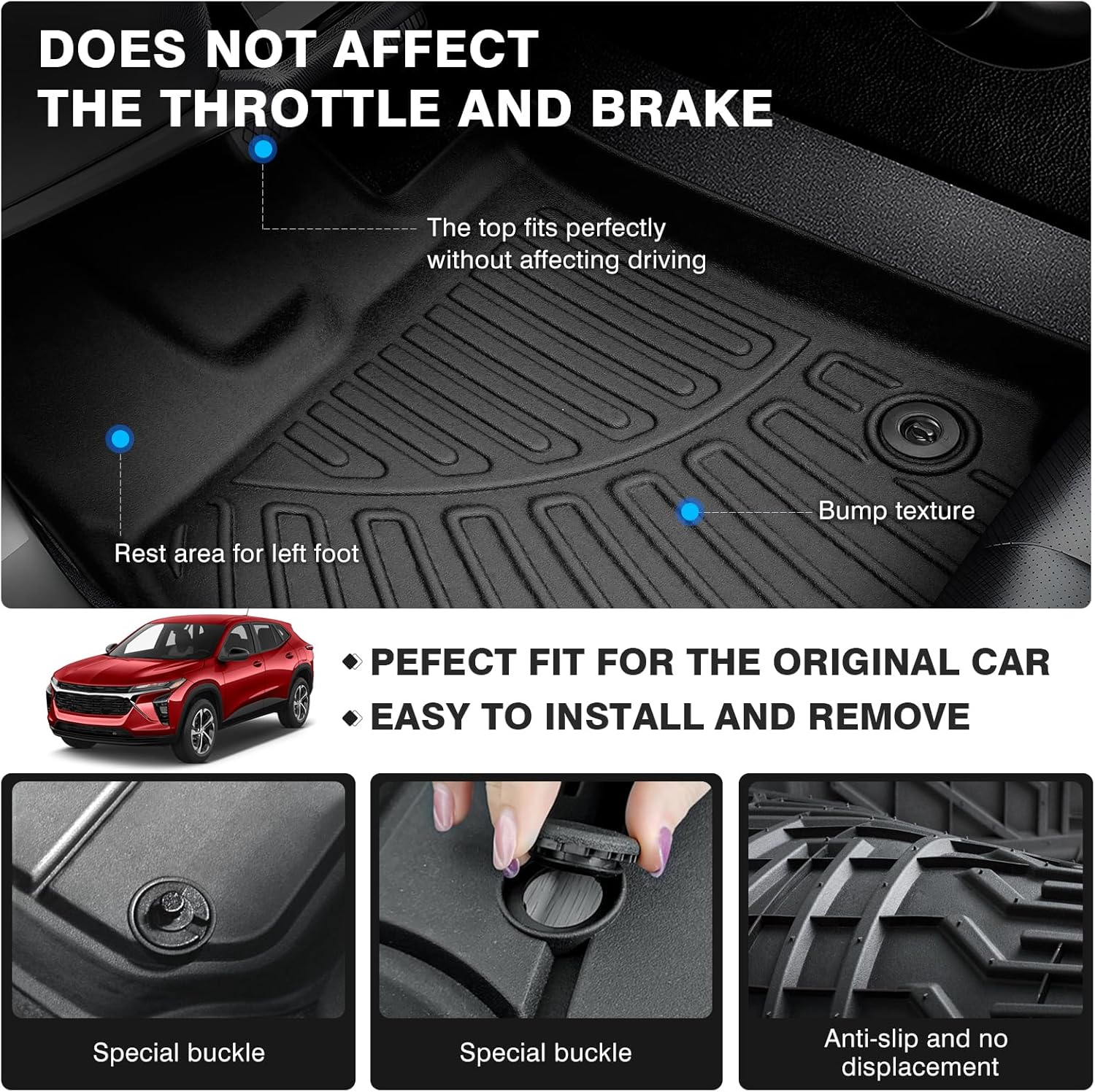 - ăCrafted for Trax Exclusivityă Introducing premium floor mats, that seamlessly integrate with your Chevrolet/Chevy Trax 2024 2025 through precise 3D-scanned design, eliminating the need for trimming.