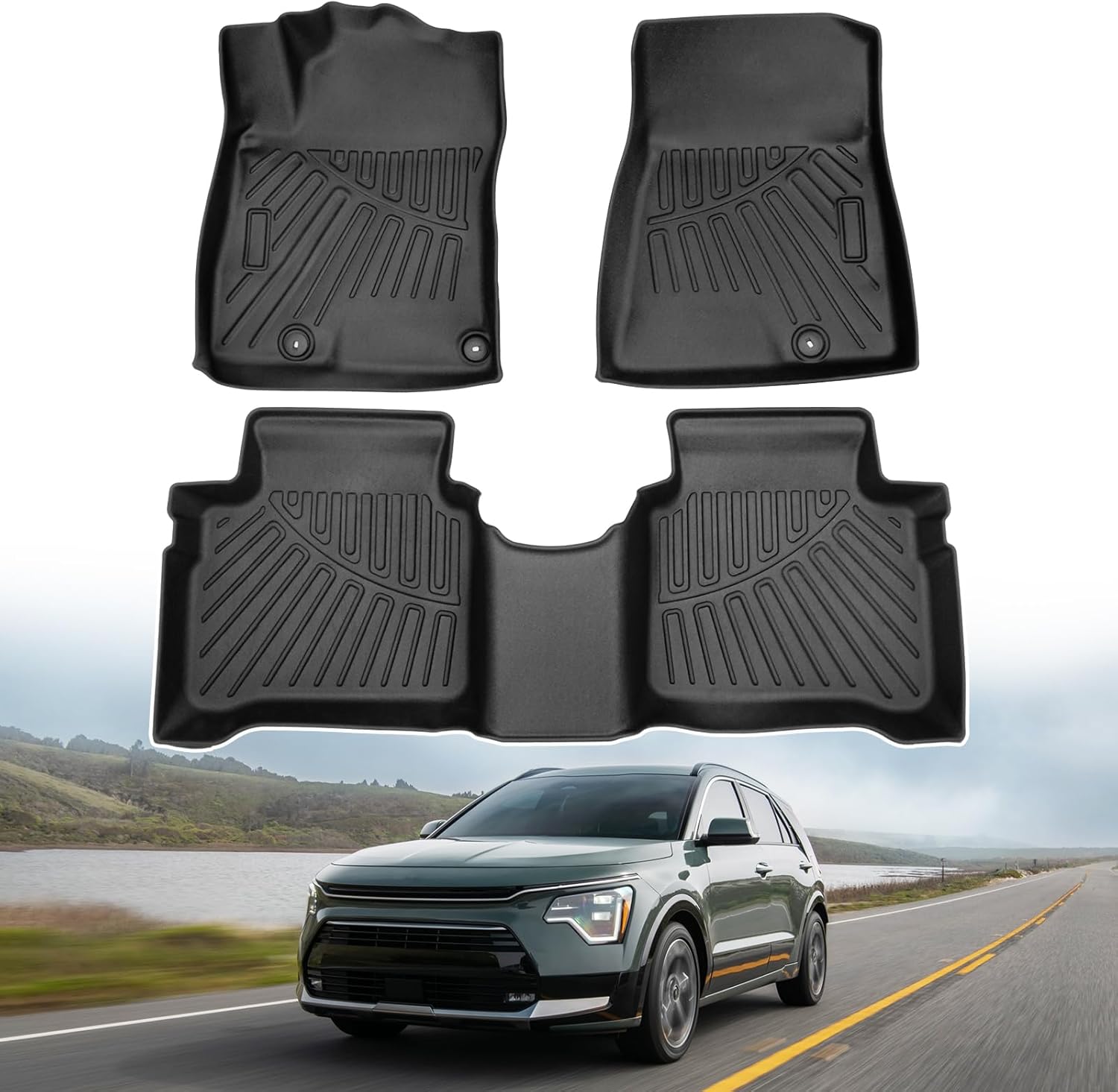 Powerty Floor Mats for 2023-2025 Kia NIRO & Hybrid & HEV - All Weather Floor Liners, 3D TPE, Heavy-Duty (1st & 2nd Row, NOT for EV & PHEV)