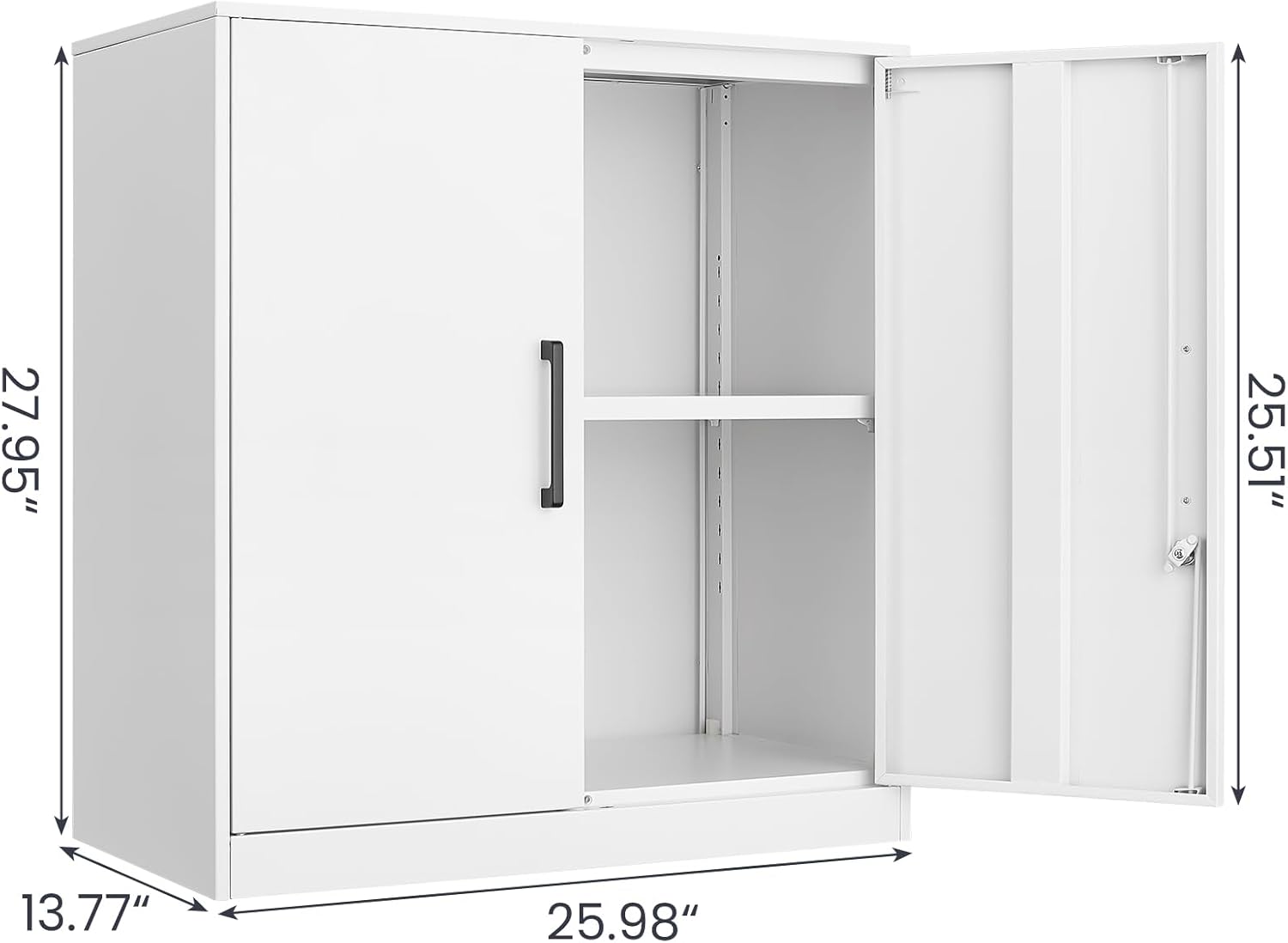 LUCYPAL Locking Storage Cabinets,Metal Cabinet with Adjustable Shelves and 2 Doors,Steel Counter Cabinet with Lockable Doors for Home Office (White)