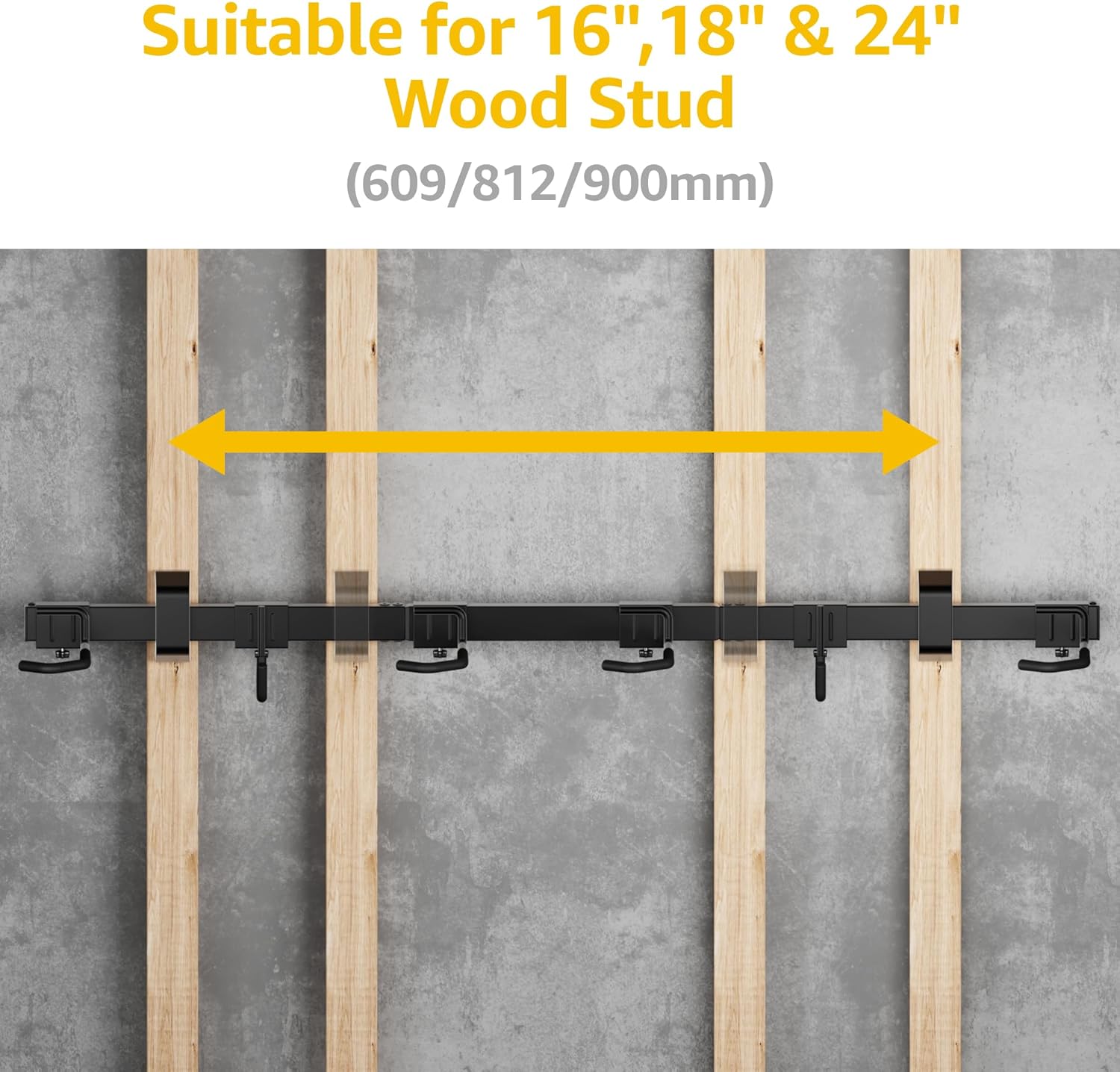 - 【EASY TO INSTALL】Installation takes just a few minutes, complete with detailed installation instructions and high-quality installation hardware. Our garage bike rack wall mount is suitable for standard 16"/18"/24" wall stud spacing. It's recommended to install the wall mount bike rack on a stud or solid wall; wood, brick, concrete wall, etc.