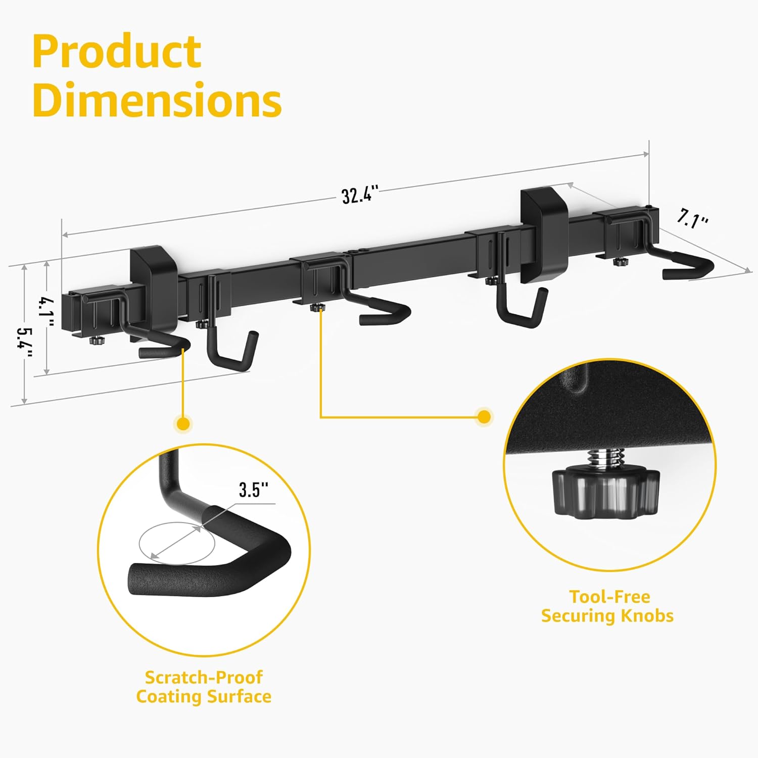 - 【ORGANIZED BIKE STORAGE】The monTEK wall mount bike rack provides 3 bike hangers and 2 helmet hooks, featuring a 32-inch long rail that elevates your bikes off the ground, freeing up valuable garage floor space. It simplifies garage organization and cleaning, truly maximizing space efficiency. This bike rack garage is perfect for garages, storage rooms, apartments, and more.