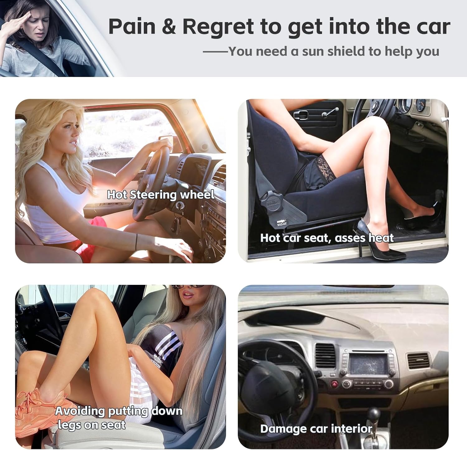 - ăThe latest upgradeăThe sunshade is made of 240T fabric with a thicker density, Nano coating, 4 anti-UV layers, and better reduce of the heat and UV rays.Double D-shaped steel ring design, So useful is the sunshade that allows you to enter the car easily.