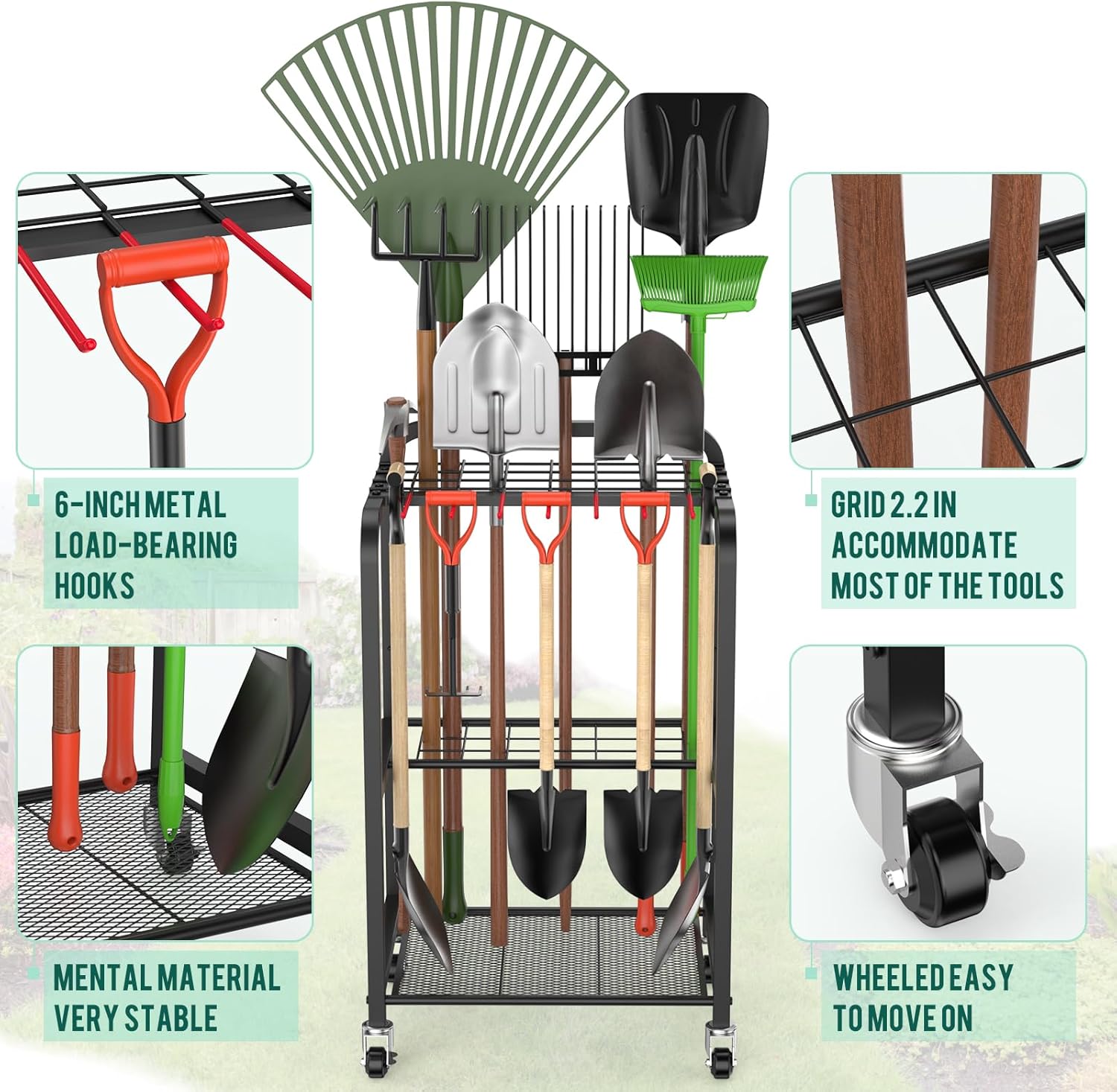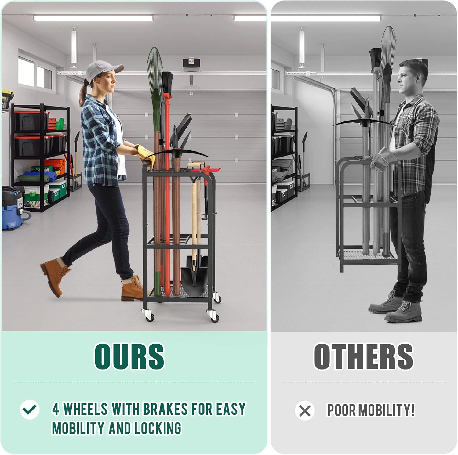 Trieez Garden Tool Organizer for Garage, Yard Tool Organizer with Wheels for Garage Organization and Storage - Sturdy Yard Tool Holder Tool Rack, for Shed, Outdoor, Tool Stand