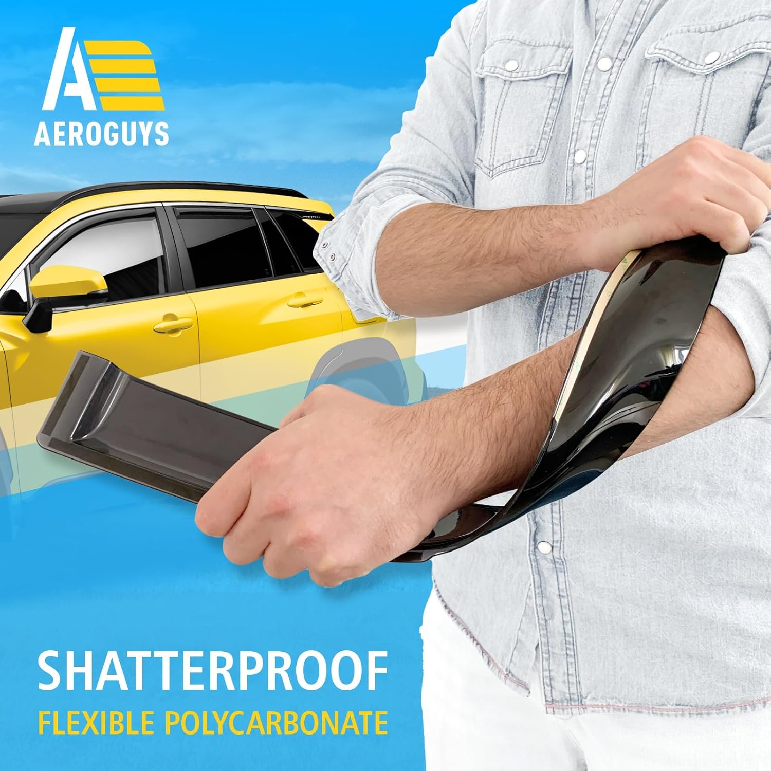 - Incredibly Durable AEROGUYS Auto Window Deflectors β They are made with strong and tough polycarbonate which is clear and scratch-resistant. They also provide UV protection making your ride more comfortable under all weather conditions.