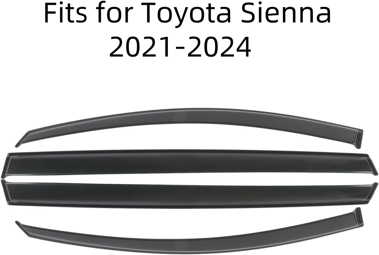 - Customzed Fit: CHYKORLA window rain guards CUSTOM FIT Only compatible with Toyota Sienna 2021-2024. Please check your vehicleโs make, model and year with fitment details to ensure accurate fitment as all visors are vehicle specific