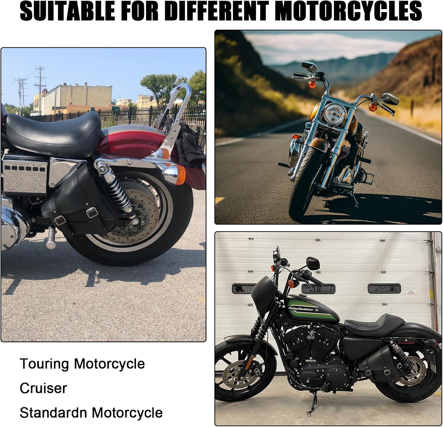 - 【Premium Material】This motorcycle saddlebags is made up of soft and durable heavy-duty PVC. The reinforced sewing and moderate thickness make our motorcycle saddle bag can always keep its shape and longer service life.