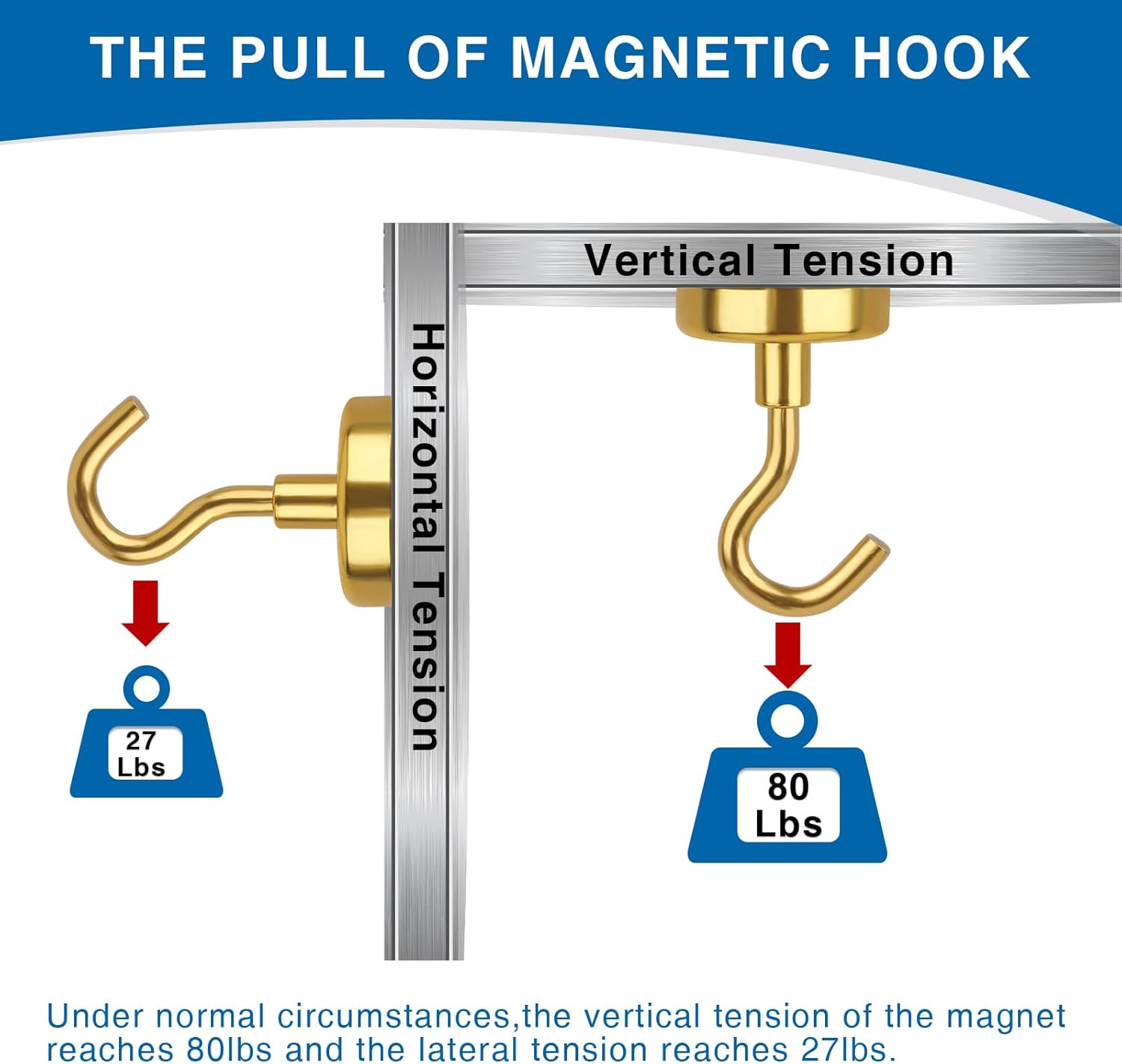 - 【MAGNETIC HOOKS】With our magnetic hooks, you can get over 80LBS of pulling force vertically and 27LBS horizontally. These colorful metal magnetic hooks for cruise essentials are very sturdy and perfect for hanging the items you need to make your life easier.