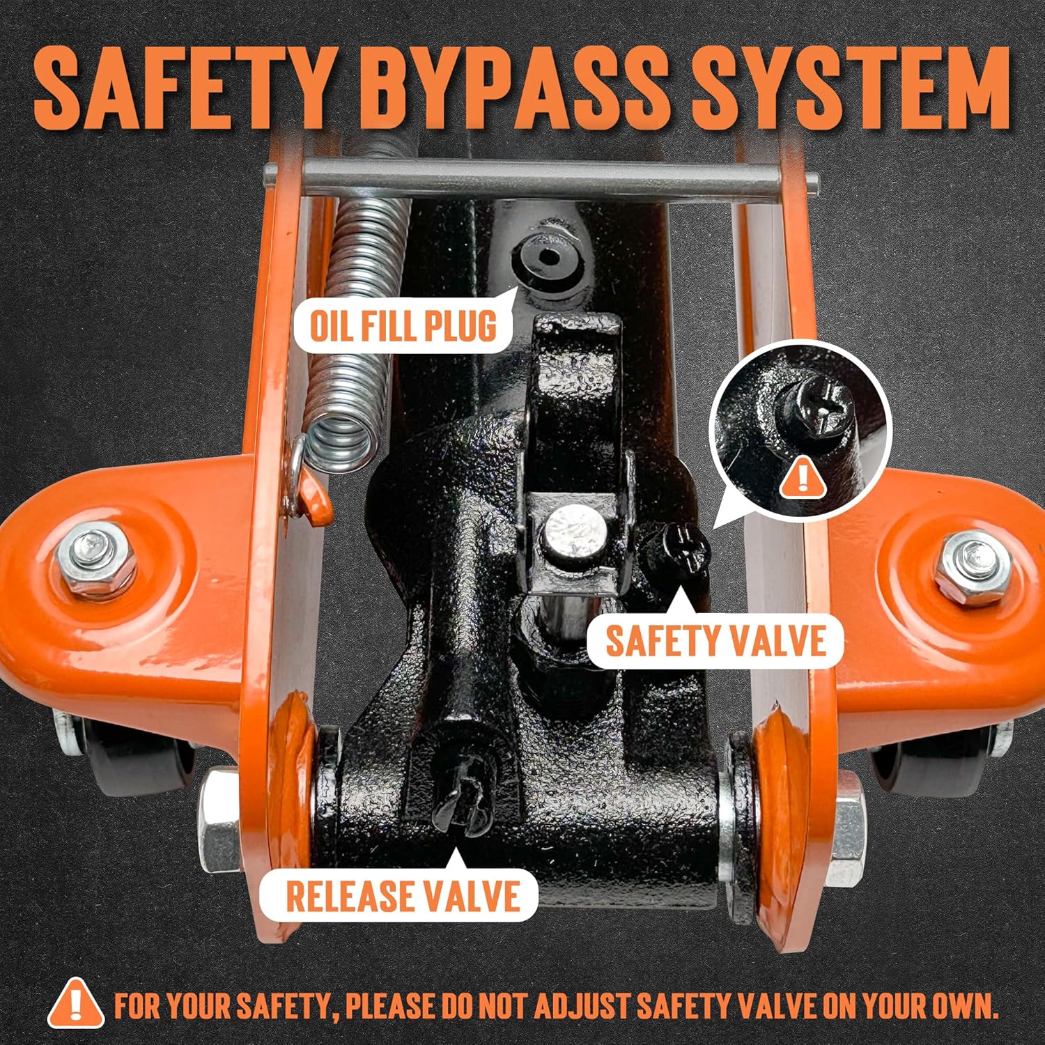 - Long-Term Durability: Made with heavy-duty steel, our hydraulic trolley floor jack is built to last. It features a durable, crack-resistant paint that won't come off quickly, providing long-lasting durability, and increasing its service life