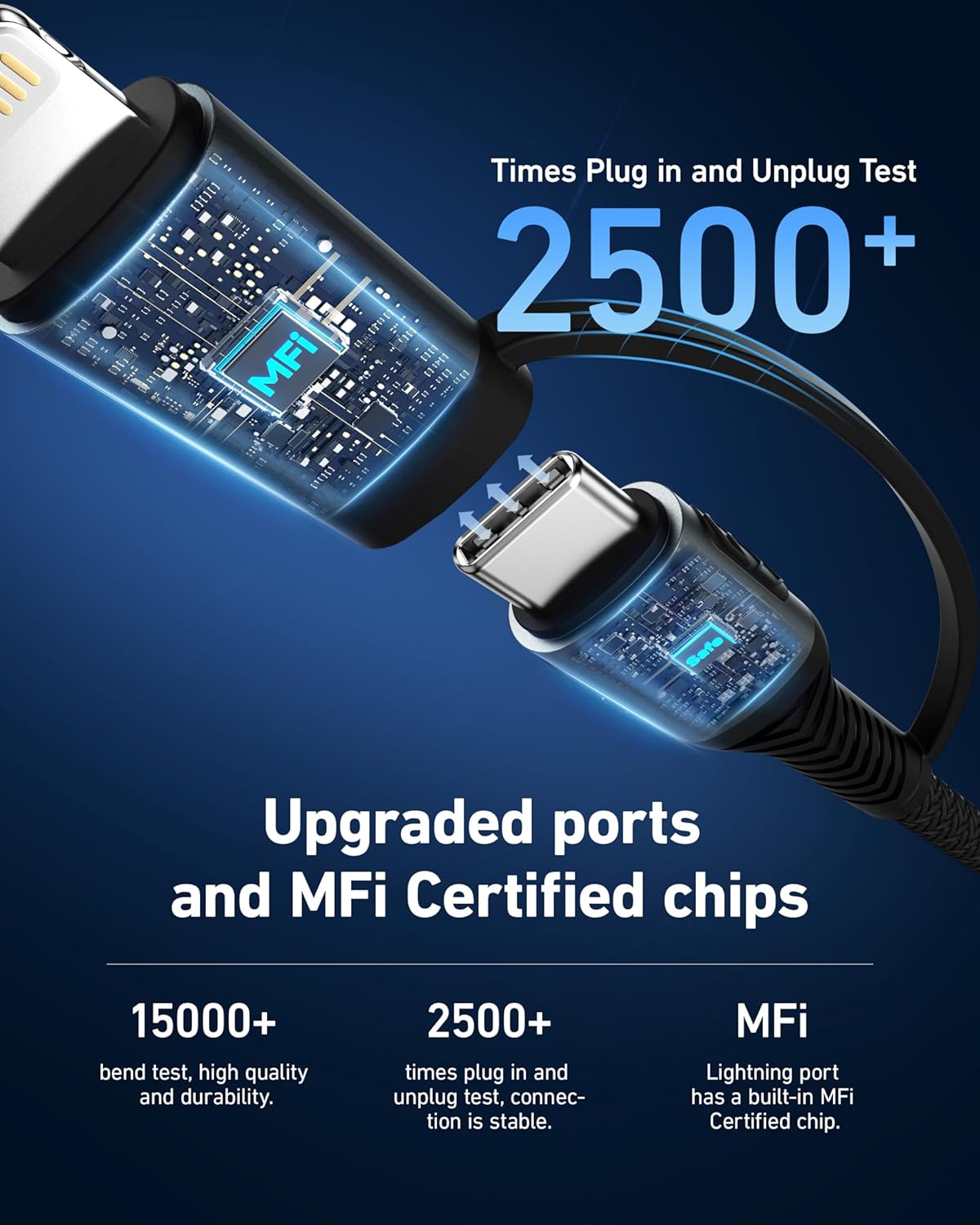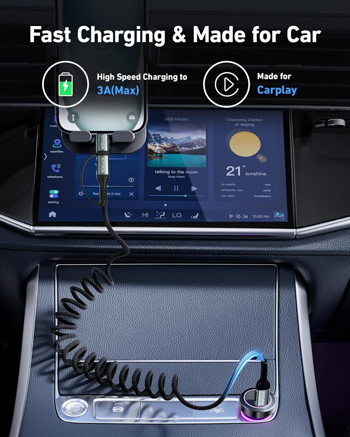 - USB C Cable with Lightning Adapter: This 2-in-1 cable is equipped with 2 connectors, the USB C connector is used for iPhone 16, iPhone 15 series, Android phones; Lightning connectors is used for iPhone 14, 13, 12, 11, etc. Easily switch between two types of connectors without the need to replace cables. It is perfectly compatible with Apple's CarPlay and Android Auto, with fast charging and data synchronization.