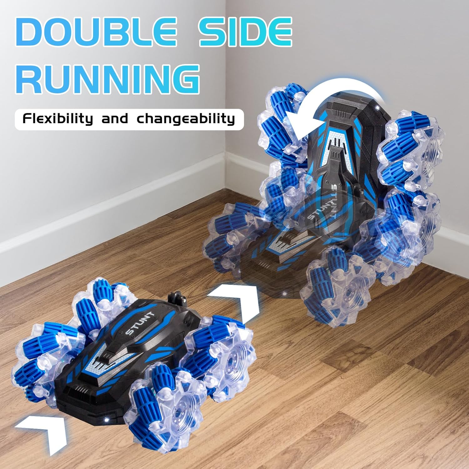 - Beautiful Lighting And Cool Music: This RC stunt car has lights and music, can drift in all directions, 360° rotation, double-sided driving, free switching road and off-road modes, give children wonderful operation experience and visual effects