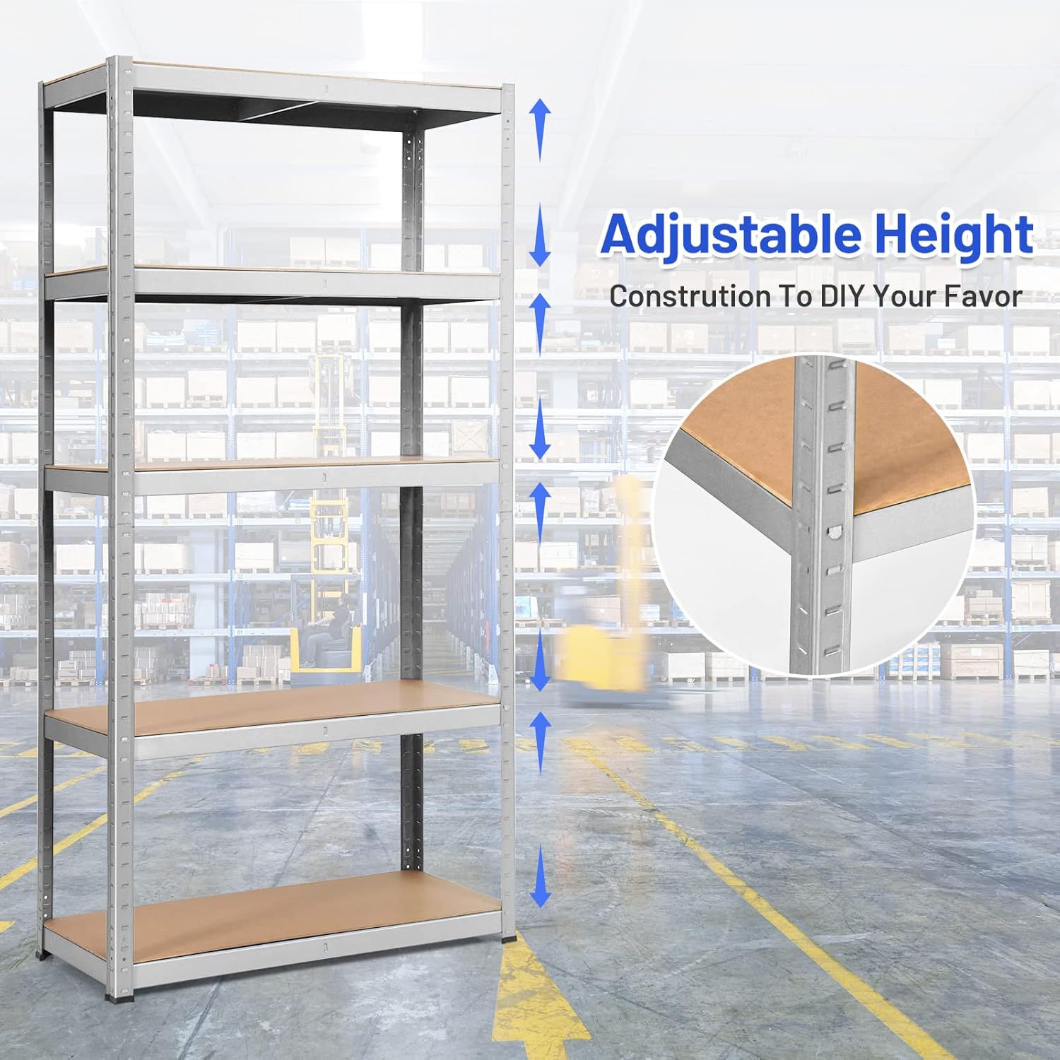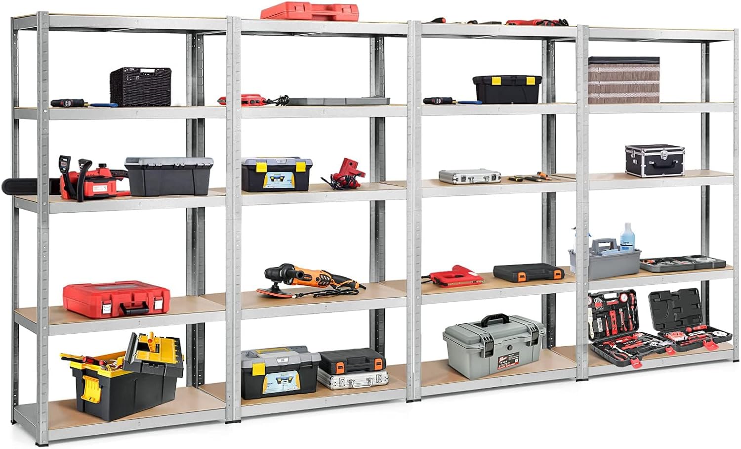 - HEAVY-DUTY 385 LB PER SHELF – Industrial-grade steel frame and reinforced MDF boards support up to 385 lbs per tier (1,925 lbs total). Perfect for tools, bins, appliances, or workshop gear.