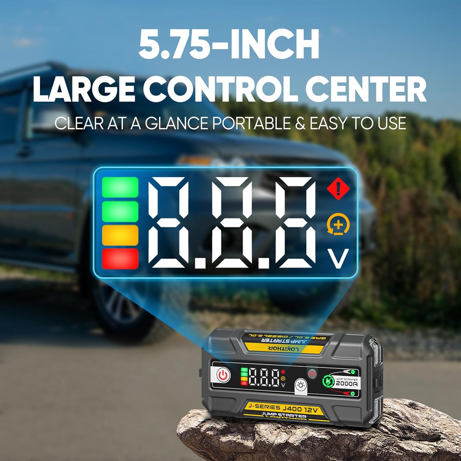 J400 Jump Starter with ConnectMax Tech, 2000A 12V Battery Jumper Starter Portable, Lithium Jump Box and Jump Pack for Up to 8.0-Liter Gas and 6.0-Liter Diesel Engines, Smart Digital Screen