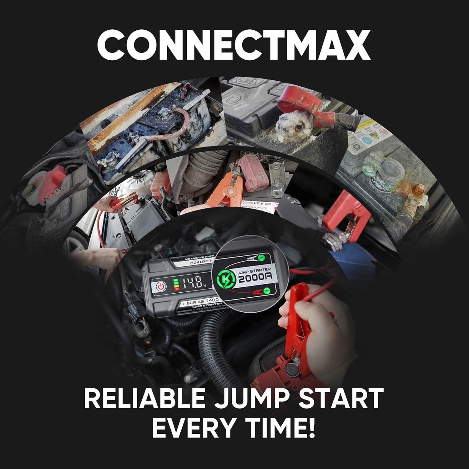 • CONNECTMAX TECHNOLOGY - Experience seamless jump starting efficiency: To ensure optimal connect every time and maximize the starting efficiency of your jump starter, our cutting-edge system automatically detects the impedance of the clamp connection to the car battery.