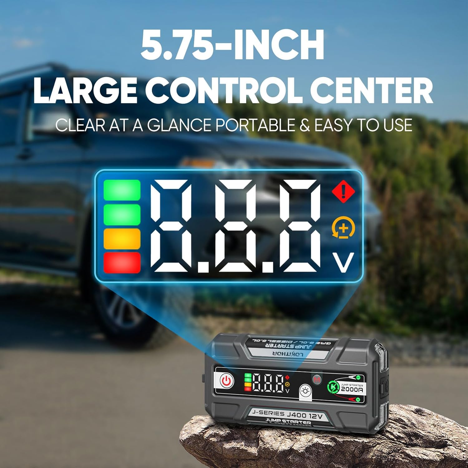 J400 2000A 12V Portable Lithium Jump Starter, Car Battery Booster Pack, USB-C Powerbank Charger, and Jumper Cables for Upto 8.0-Liter Gas and 6.0-Liter Diesel Engines