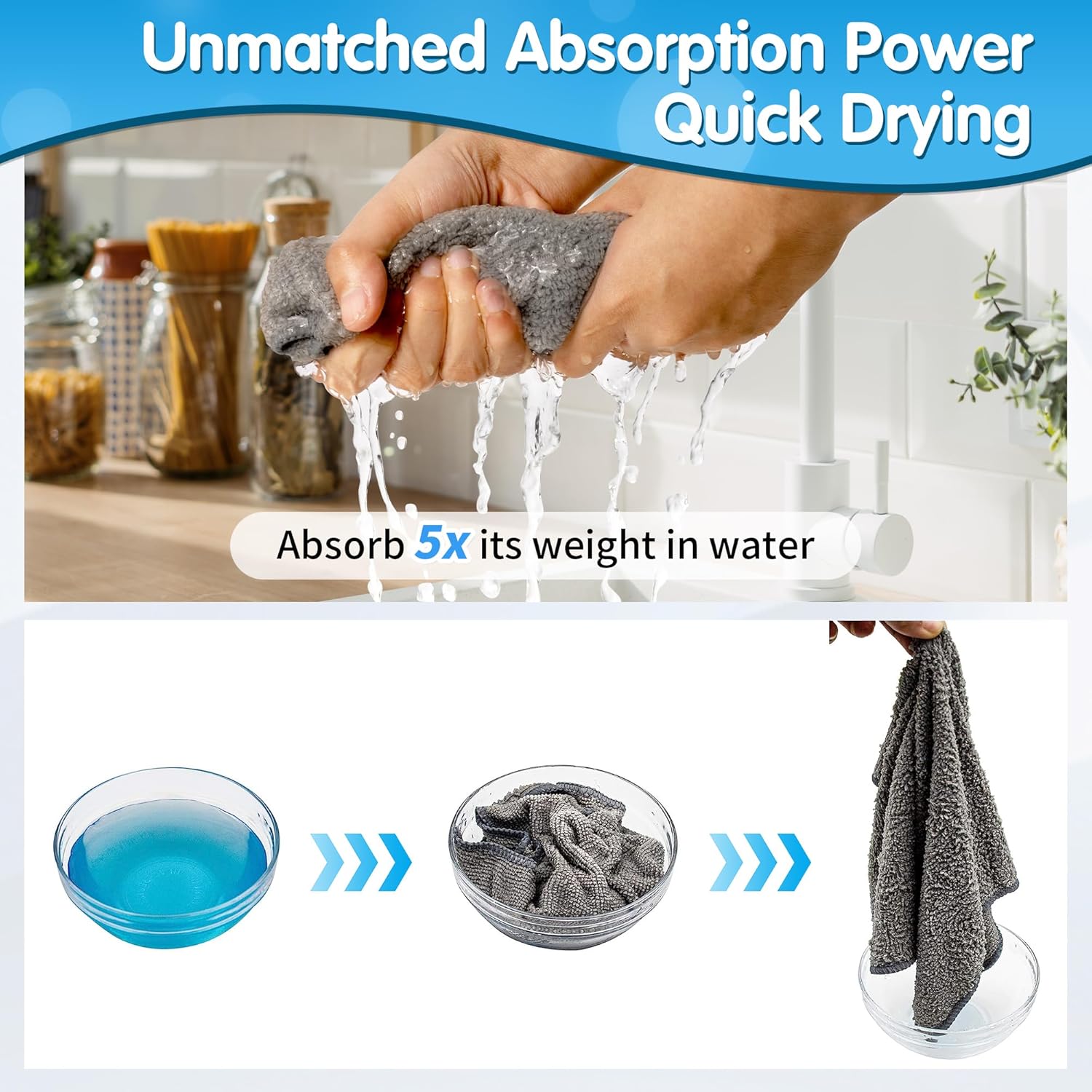 - Powerful cleaning performance: These premium microfiber towels are not only perfect for dishwashing, but also effortlessly remove grease and particles from microwaves, plates, pots, and pans. Moreover, they work wonders as dusters, effortlessly removing fingerprints and dirt from silverware and glassware, leaving your home spotless.
