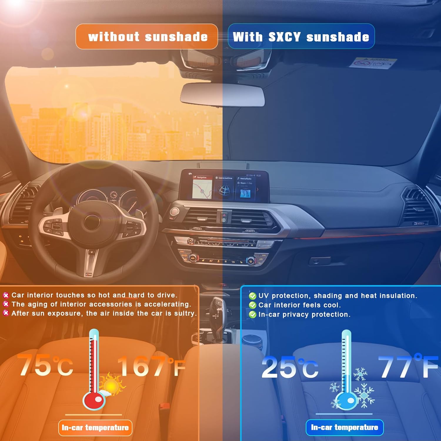 SXCY for 2018-2023 2024 BMW X3 Windshield Sunshade for 2021-2023 2024 X3 30i/M40i/M Accessories 2023 2024 X3M Sun Shade Foldable Sun Shield 2022 2023 2024 X3 Sun Protector Block UV Ray