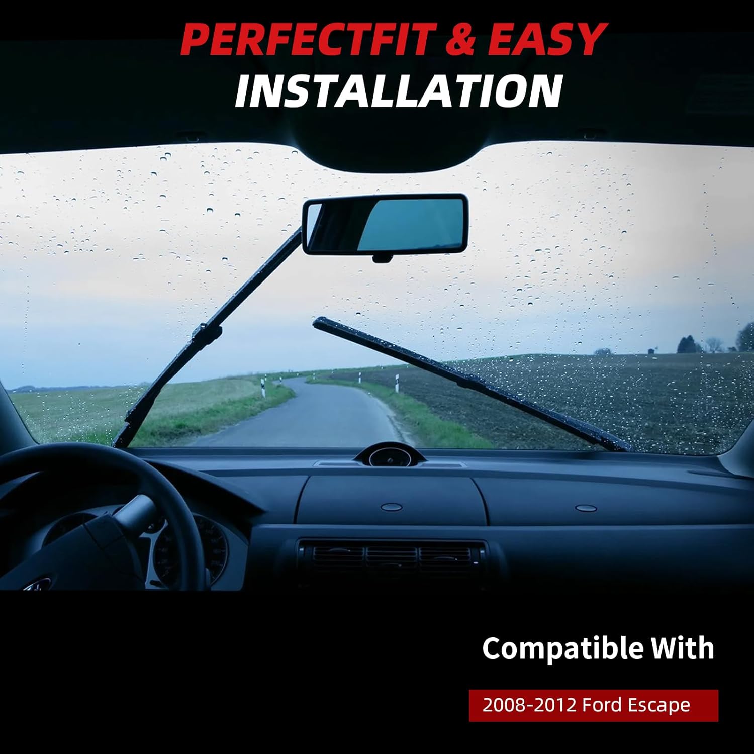 - [20"+20"+12" Perfect Fitment]: Replacement for Ford Escape 2008-2012. Our windshield wiper blades are engineered to provide a perfect fit for vehicle models, ensuring optimal performance and coverage