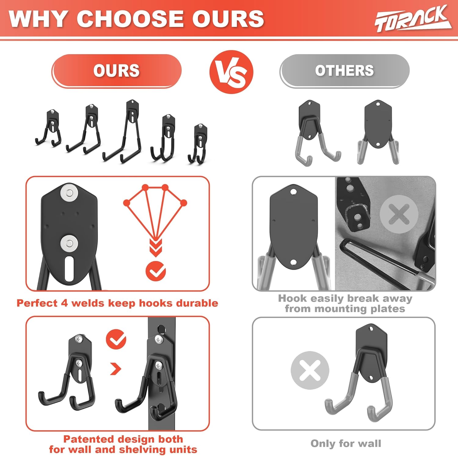 TORACK 15PCS Garage Storage System Hooks, Shelving Hooks for Keyhole Shelving Units Wall Mount Utility Hooks for Tools, Ladders, Cords, Folding Chairs, Shovels and Rakes(Black)