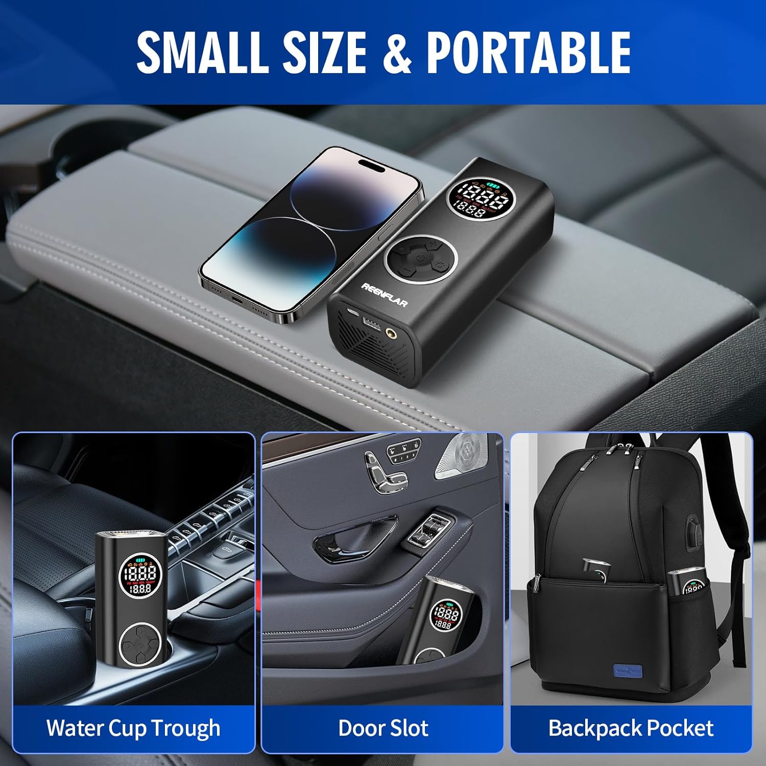 - 【Auto Shut Off with Digital Tire Pressure Gauge】Portable air pump with built-in high-performance chip and automatic shut-off design, no need to worry about over-inflating, ensuring 100% safety when inflating car, bike or motorcycle tires, it can quickly inflate tires and provide high-speed airflow. The large LED display shows real-time pressure values and preset values for easy monitoring of tire pressure status