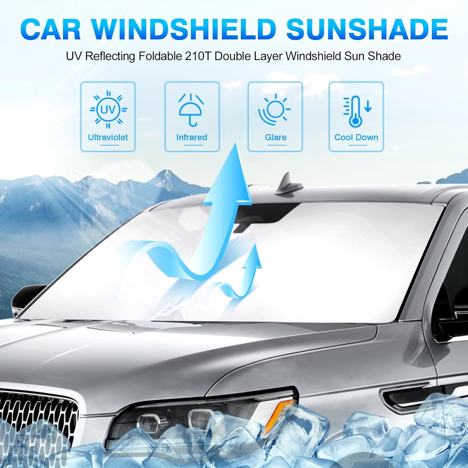 - 【Nice Fabric】Made of 250T Reflective Fabric, this material features higher density.Double-layer design including black heat insulation layers and silver reflective layers,providing better protection against Sun, blocks up to 99% of damaging UV rays and Heat build-up.(NOTE:The Silver side is OUTWARD,while Black side is INWARD.)
