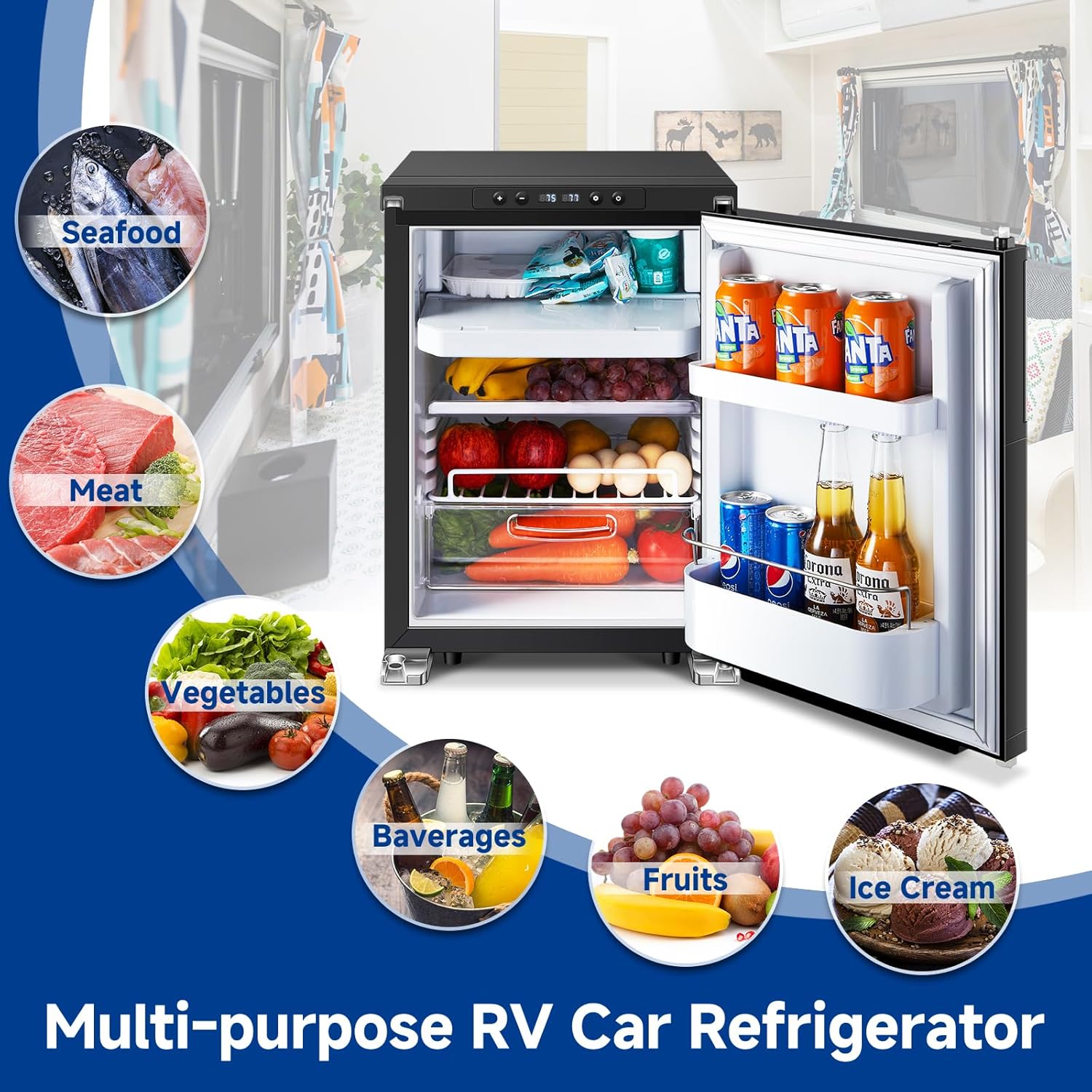 - Dual Zone & APP Control : BODEGA 12 Volt RV refrigerator supports manual control or WiFi APP control (For android & ios). Dual zones allow for both freezing and refrigeration, with the upper zone serving as the freezer and the lower zone as the refrigerator. You can check or set the temperature, voltage, cooling mode and more using the APP