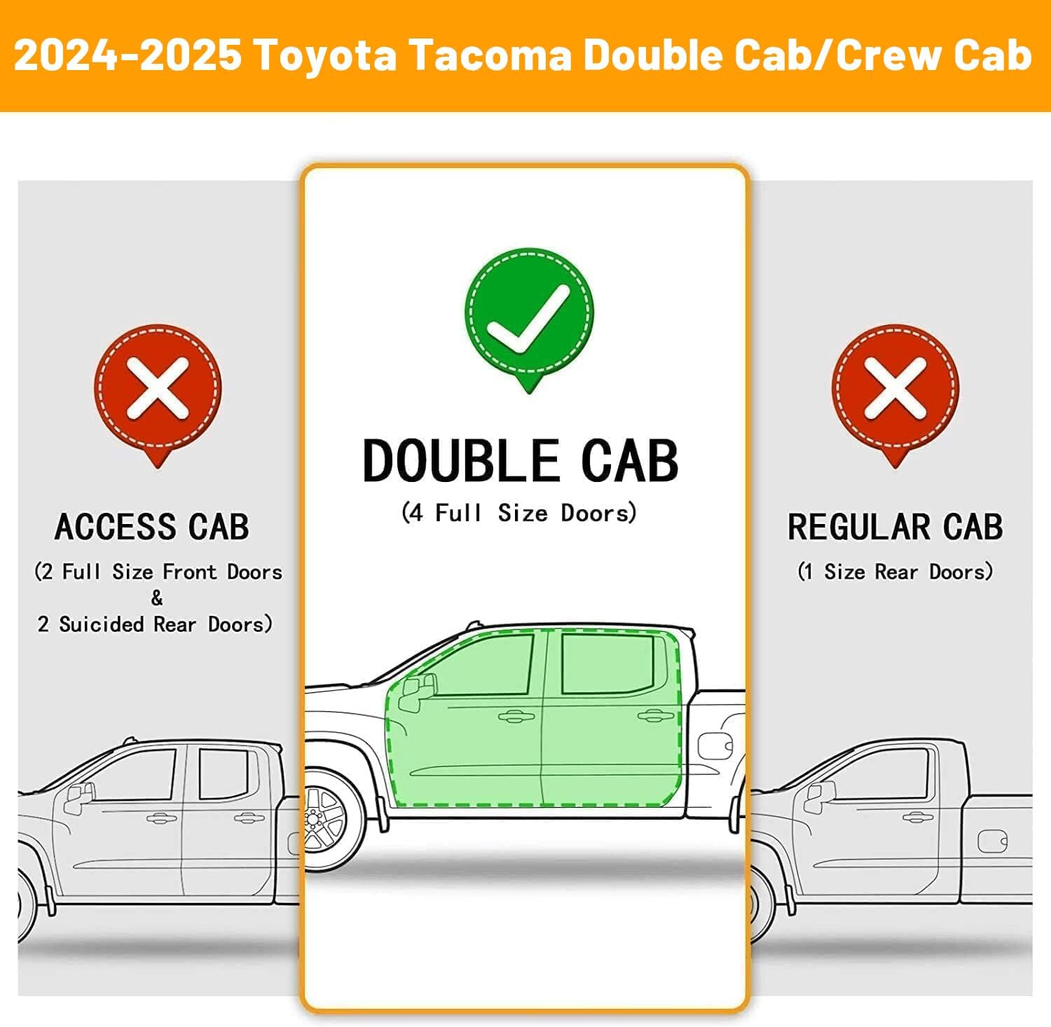 - Vehicle Service Type : 2024-2025 Tacoma Double Cab with 4 Full-Size Doors
