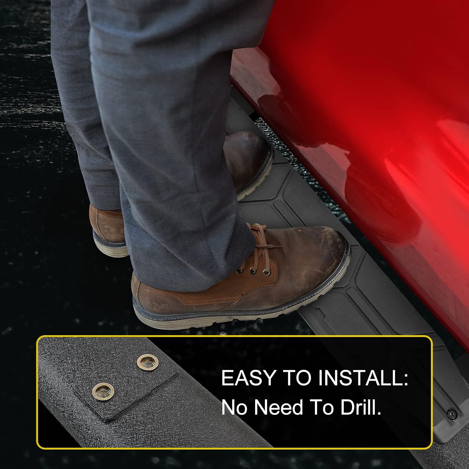- EASY TO INSTALL: Non Welded Design Of Product, Just Mounted It, Direct Bolt On, No Need To Drill. The Items Include: 2 Running Board(left And Right), Brackets, Hardware, and Detailed Instructions.