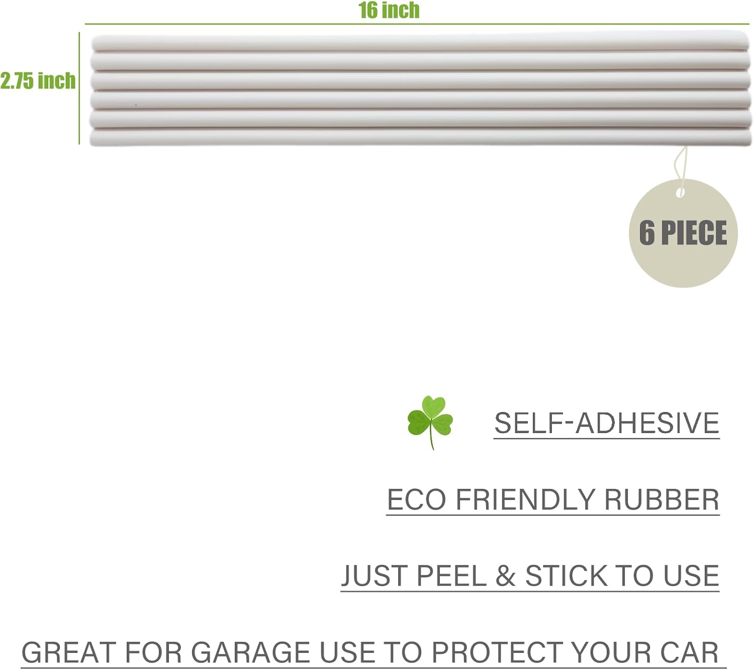 Garage Wall Protector Strip Car Door Protector, Self-Adhesive Rubber Garage Wall Guards for Car SUV Doors, Waterproof Wall Bumper Guards for Cars - 2.75x16 Inches 6 Packs - White