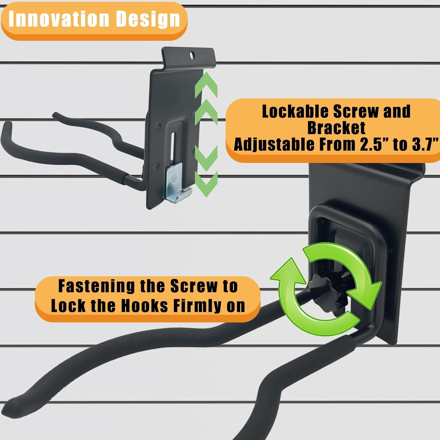 Adjustable Slatwall Hooks, Lockable Slatwall Weedeater Hanger, String Trimmer Hanger, Power Tool Hanger for slatwall Accessories, Utility Hooks for Garage Storage 8"" 2 Pcs, Black