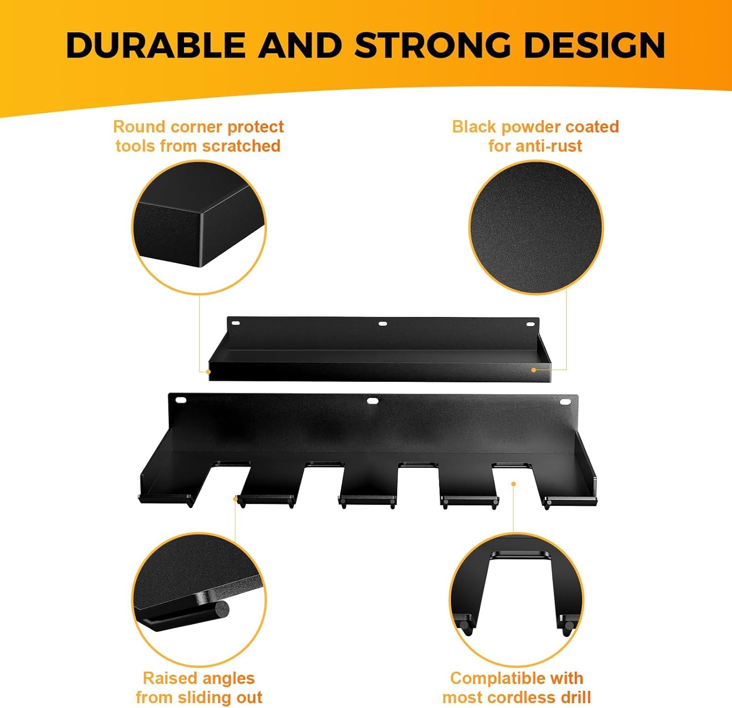 - High Loading Capacity: Our power tool organizer are formed integrally and not easy to break. Sturdy and stead, high quality soild steel construction, loads up to 200lbs. And our racks with anti-slip tail details