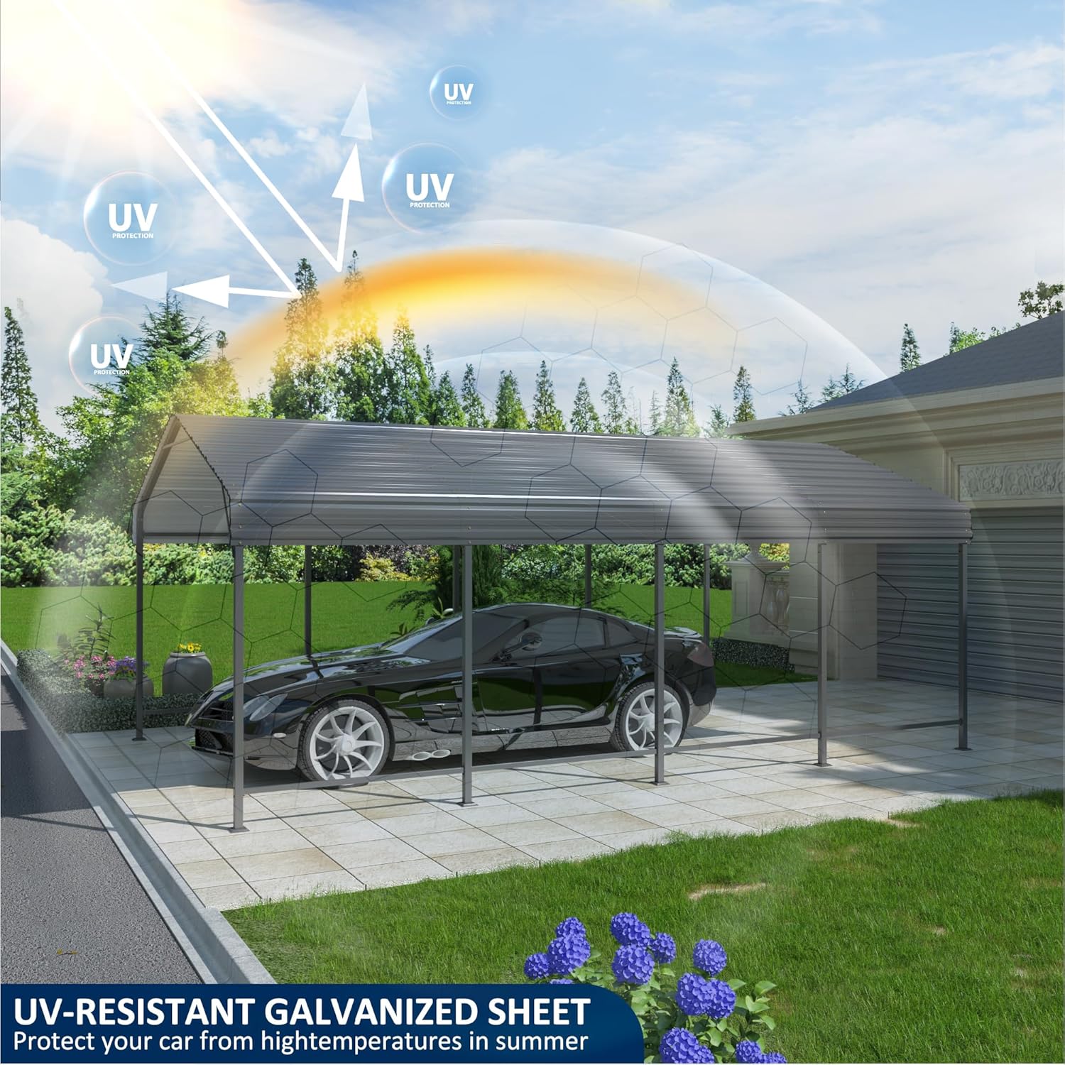 • [Multipurpose Protection] It can easily transform into an inviting space for outdoor activities or secure storage, seamlessly integrating into any exterior decor. Whether you need a shelter for your vehicles or a functional space for your hobbies, this carport has got you covered.