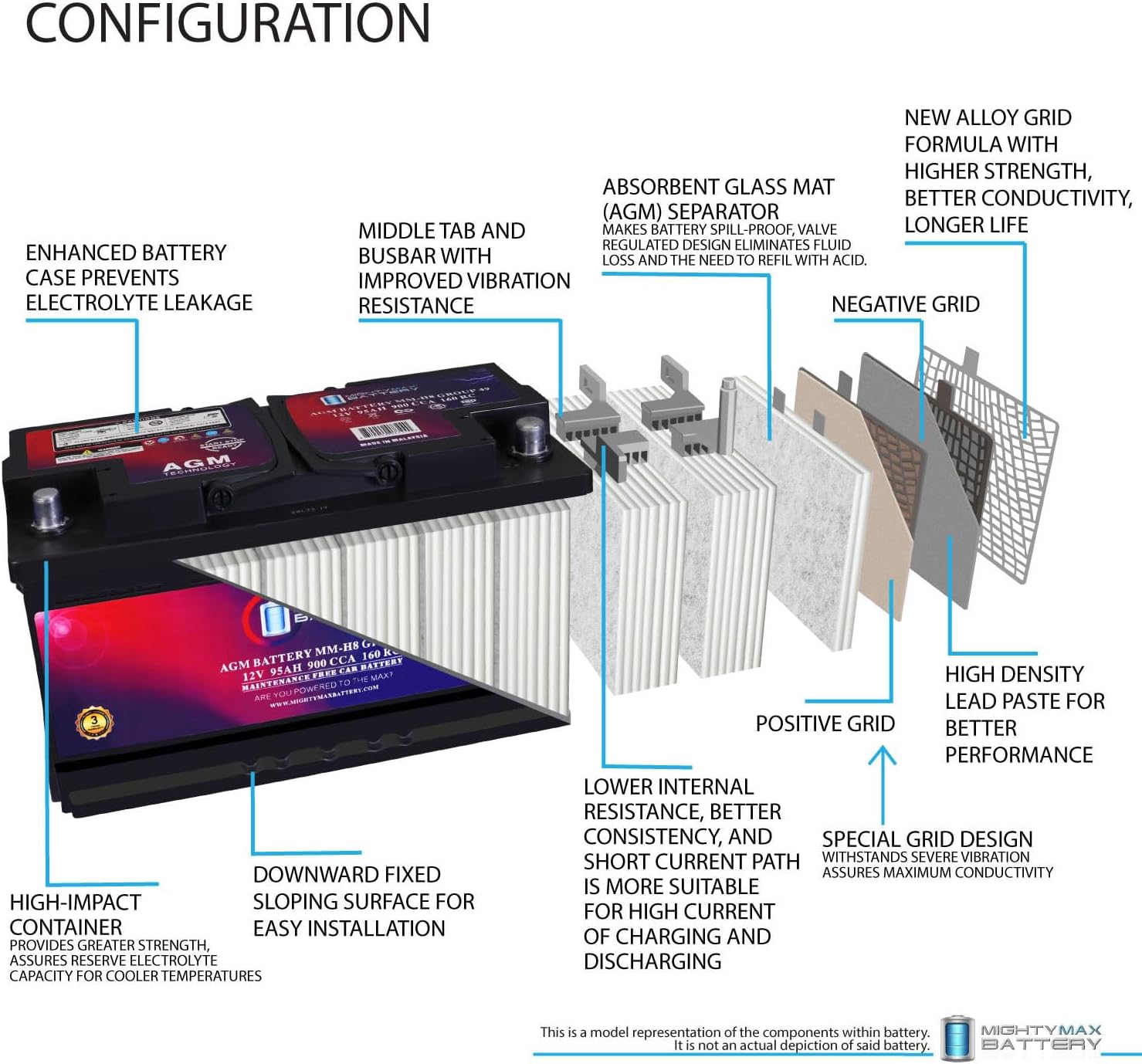 Mighty Max Battery MM-H8 Start and Stop Car BCI Group 49 12V 95Ah, 160RC, 900 CCA Rechargeable AGM Car Battery
