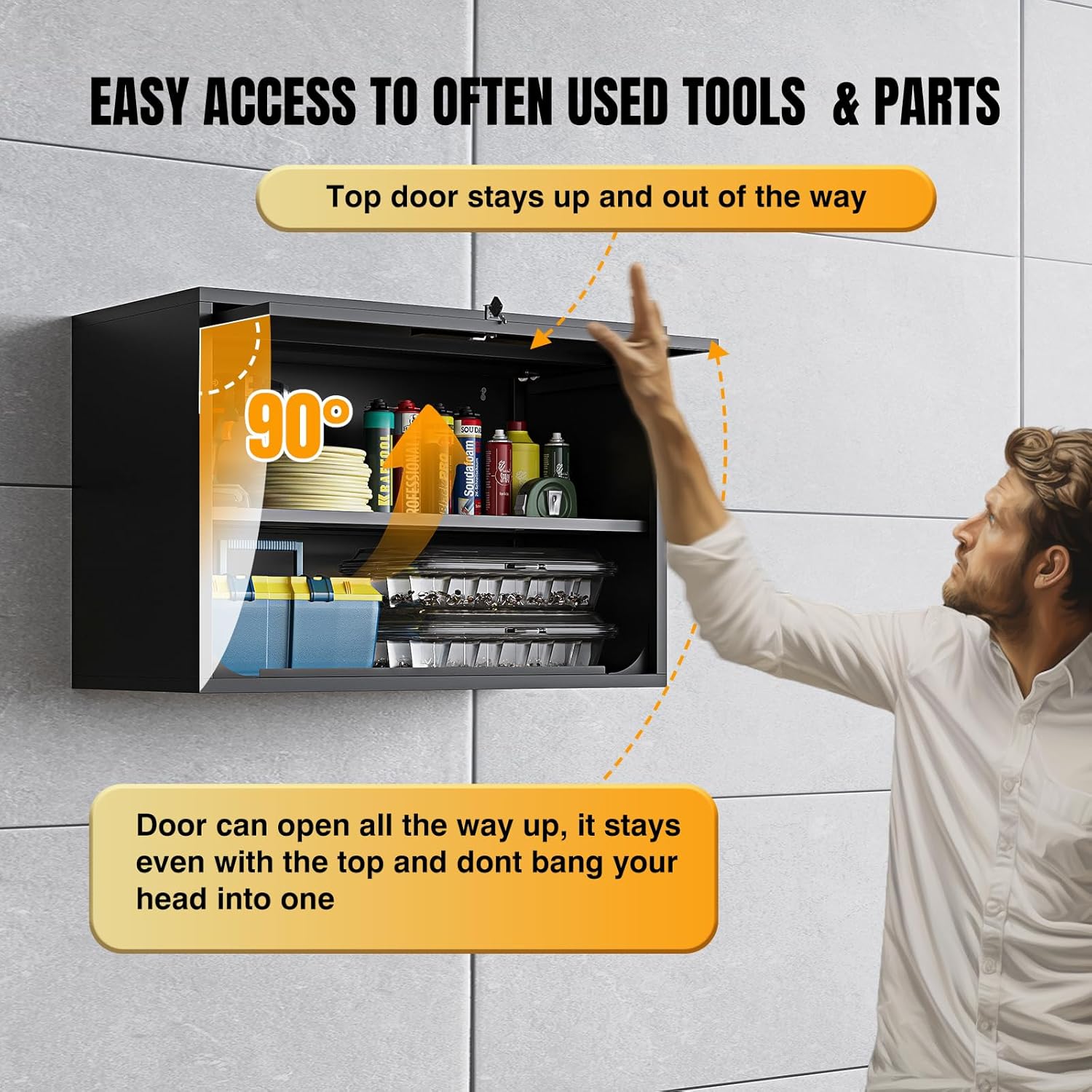 Metal Wall Storage Cabinet Adjustable Shelf 22'' Tall Steel Garage Wall Mounted Cabinet Lockable Floating Garage Storage Shop Trailer Tool Assembly Required